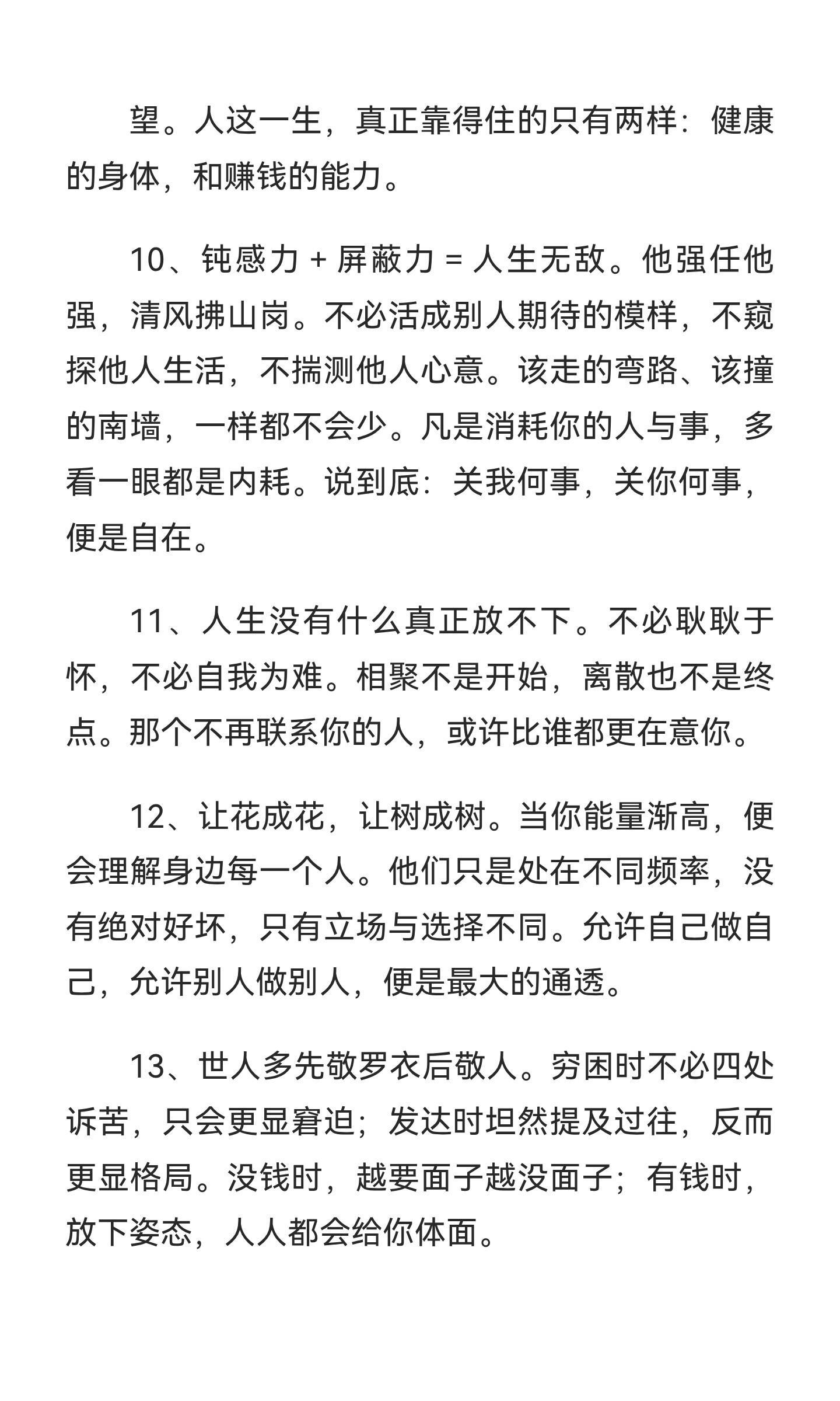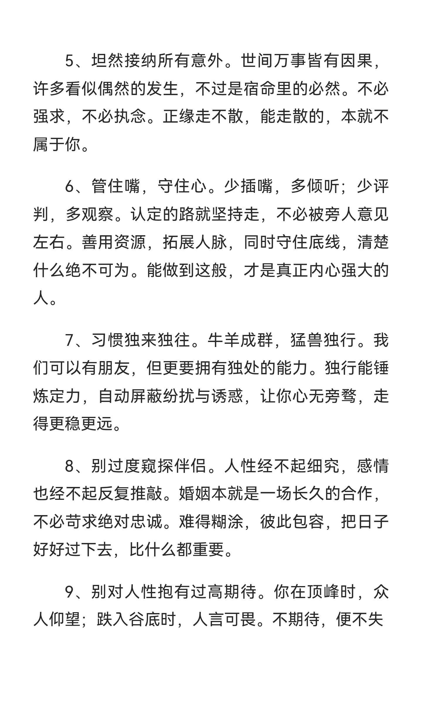 很现实的一段话:“记住这四句改命口诀,一、少管别人的事,哪怕是亲人的事;二