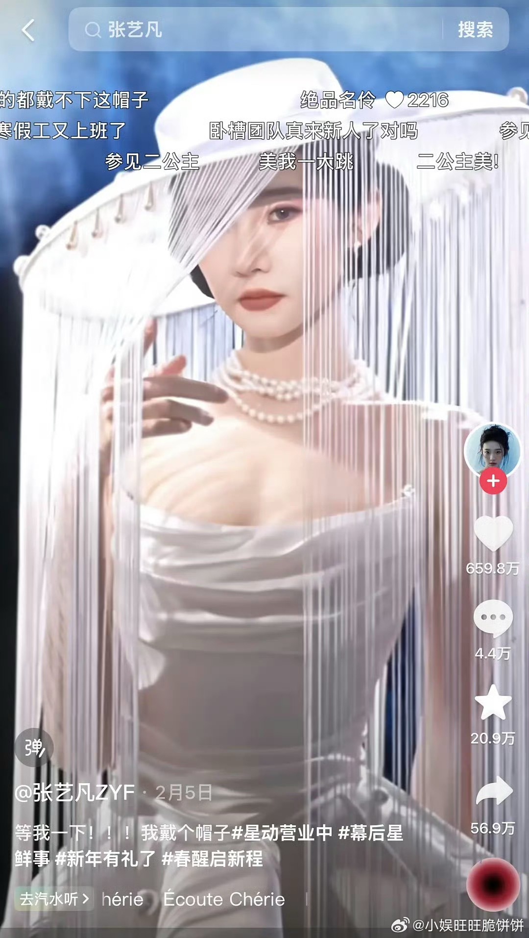 虞书欣紧接着张艺凡 也出了帽帘造型
