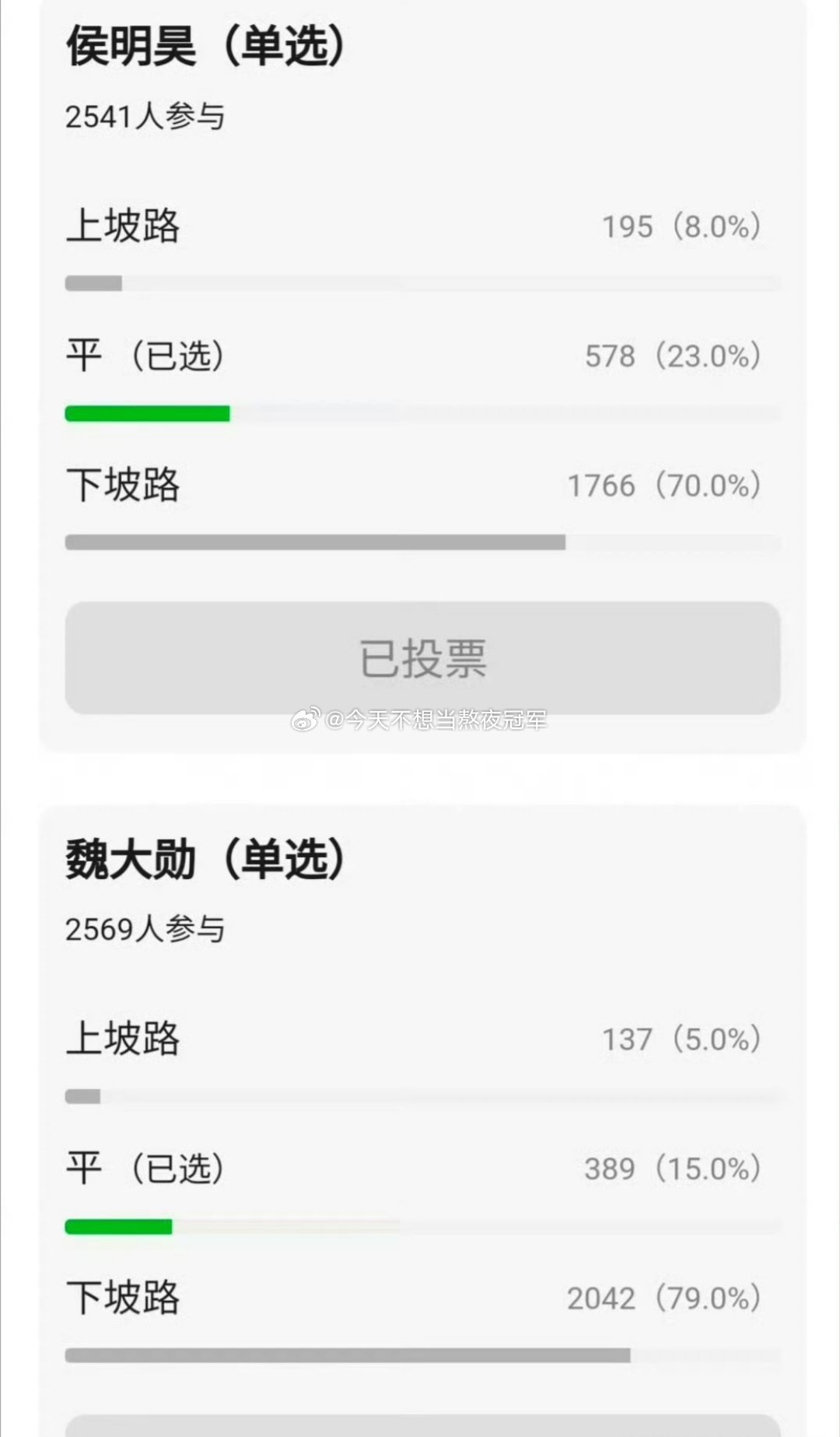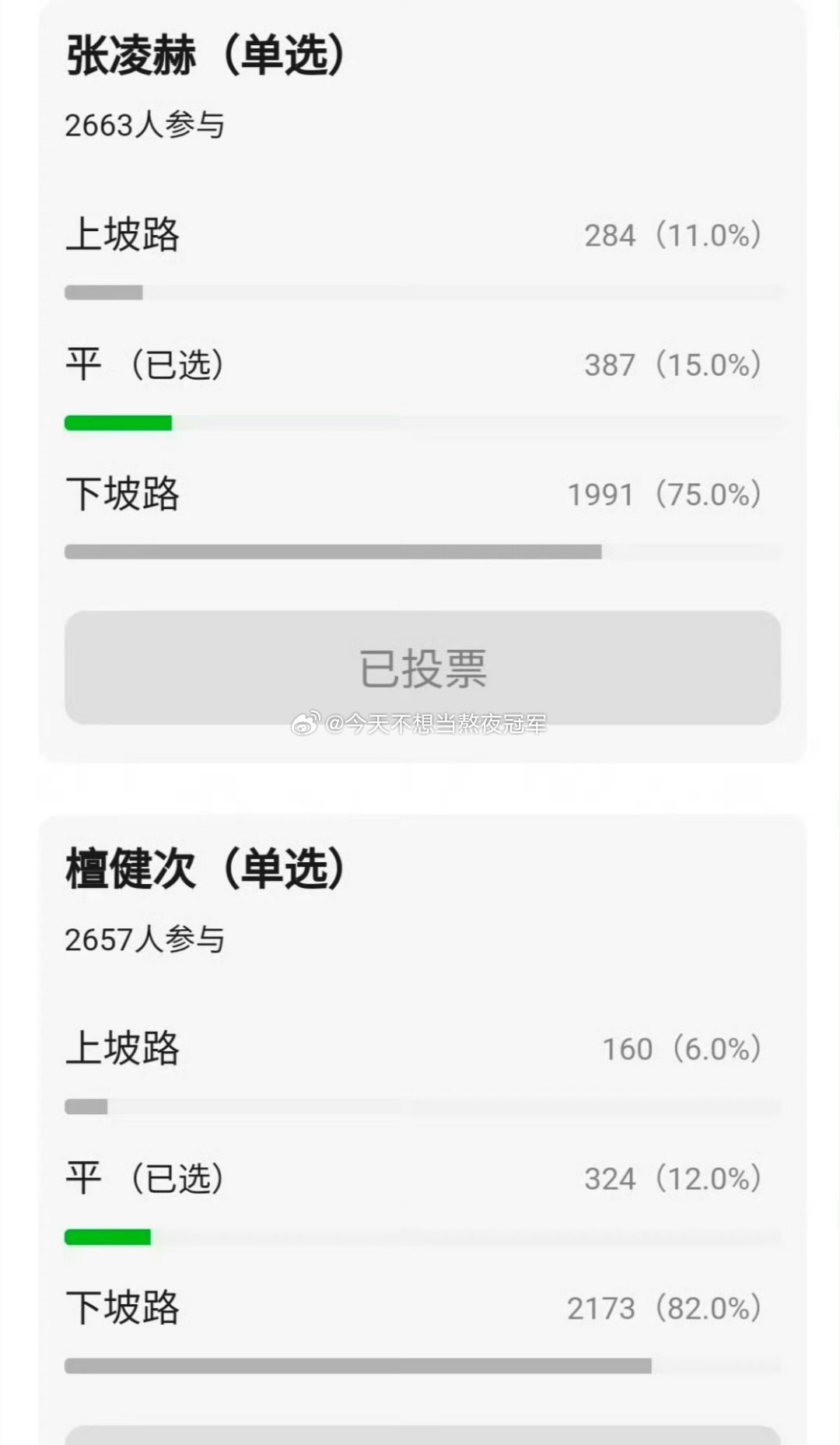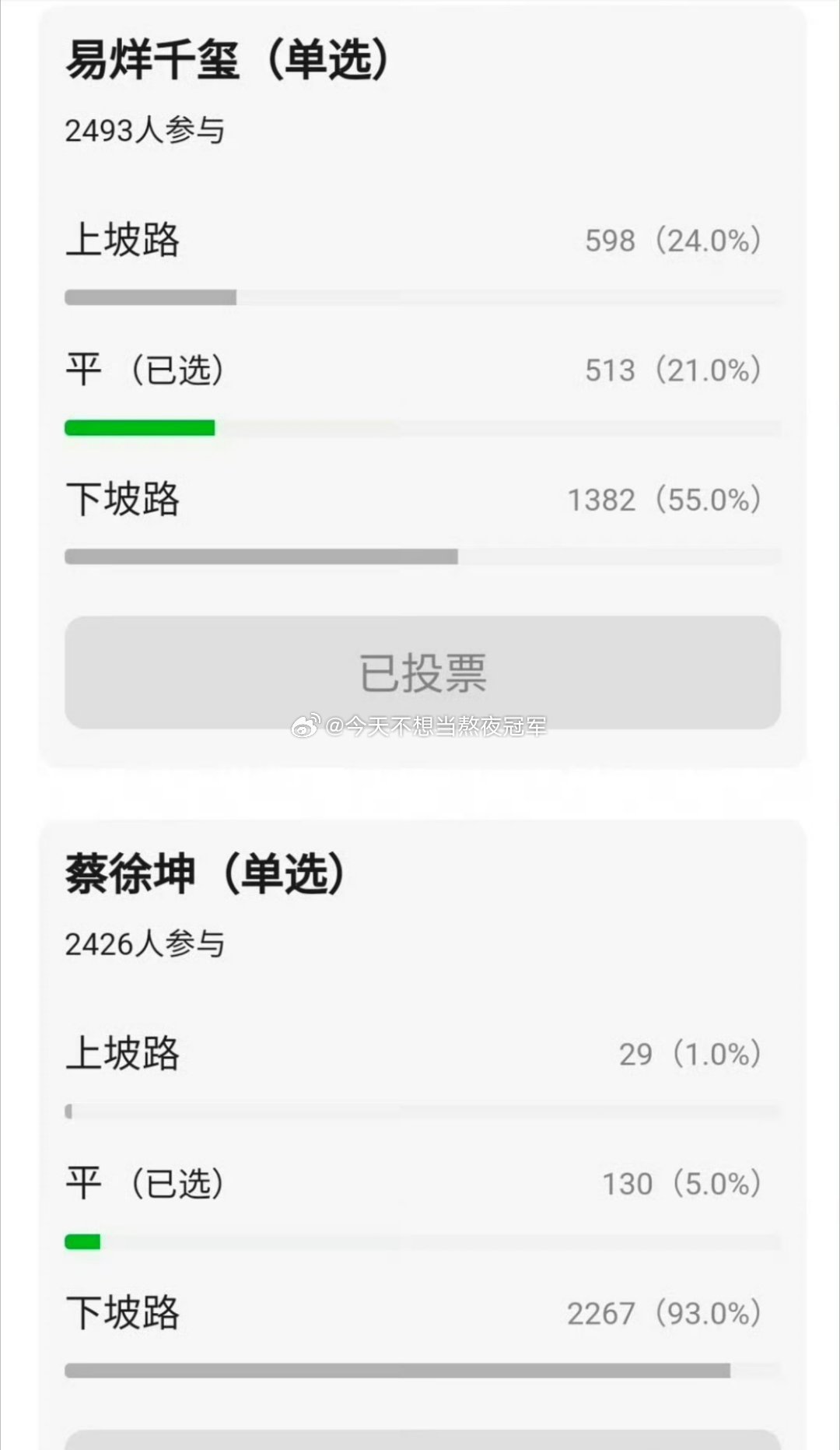 网友票选,内娱当红流量在走上坡路or下坡路看完我人真麻了。。。