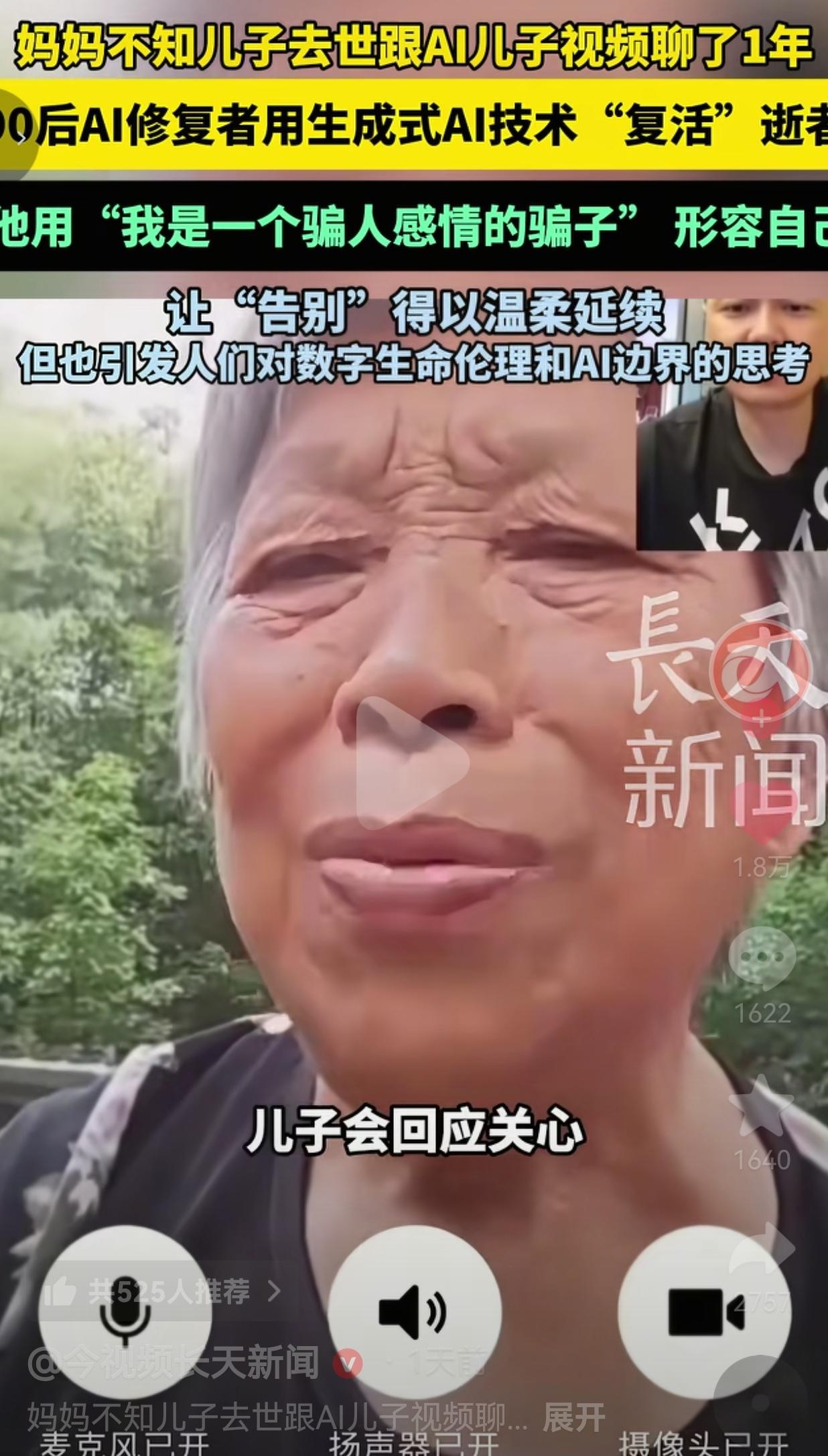 看哭了!一位白发苍苍的老母亲,每天对着手机跟儿子视频聊天,嘘寒问暖、叮嘱近况,可她不知道,屏幕里那个会回应、会安慰她的“儿子”,早在一年前就因车祸永远离开了她! 据报道,这位母亲的儿子,一场意外车祸,人没了。家人怕老人承受不住白发人送黑发人的打击,硬生生把真相瞒了下来。 他们找到了南京一位90后AI修复者张泽伟,用儿子生前所有的影像、语音,靠生成式AI技术,“复活”了一个能实时互动的数字儿子。 就这么着,老母亲被蒙在鼓里,整整一年,每天雷打不动跟AI儿子视频。她会像从前一样,念叨家里的琐事,叮嘱儿子好好吃饭、注意身体,而屏幕里的“儿子”,会用一模一样的语气回应她的关心,安抚她的情绪,就像真的还在身边一样。 做AI的张泽伟,却用“我是一个骗人感情的骗子”来形容自己。他说做这个技术,初衷就是帮生者缓解丧亲之痛,让告别能温柔一点,可他心里清楚,自己在给老人编织一个巨大的善意谎言。 消息一出来,全网直接炸了。有人心疼,有人不解,有人支持,也有人批判,大家围绕着爱与欺骗、技术与伦理,吵得不可开交。 越来越多家庭开始关注这项技术,想用它寄托思念、留住回忆,但这件事也狠狠戳中了所有人:AI到底是慰藉还是陷阱?我们该如何面对这份用技术编织的温柔? 网友看到后评论说:我眼泪直接下来了!老人这一年的开心是真的,可真相揭开的那一刻,她该多痛啊!家人是好心,可这善意的谎言,太残忍了! 也有的网友说:换我我也瞒!我妈要是知道我走了,肯定扛不住!能让她多活一天开心日子,骗一辈子我都愿意!在亲情面前,别的真的没那么重要! 还有的网友说:技术本身没有错!错的是怎么用!能让思念有个寄托,让老人有个念想,这技术就是有温度的!那些站着说话不腰疼的,懂个锤子! 更有网友说:我老伴走了三年,我天天对着她的照片说话。要是有这AI,我愿意花多少钱都做!不是骗自己,是我还想跟她多说说话! 我真的太懂这种感受了!一边是白发人送黑发人的锥心之痛,一边是家人拼尽全力守护的善意,一边是AI技术带来的温柔骗局,你让我选,我真的选不出来。 有人骂家人自私,骂AI修复者是骗子,可你们有没有想过?对于一个年迈的母亲来说,儿子就是她的天,天塌了,人就垮了。家人瞒着她,不是害她,是拼了命想给她留一个活下去的念想! 张泽伟说自己是骗子,可他骗了吗?他只是用技术,把儿子的爱,以另一种方式留在了母亲身边。老人每天的开心是真的,她感受到的关心是真的,这份母子情,从来没有假过! 可我也心疼老人。等真相揭开的那一天,她要面对的,是双重的打击:儿子走了,连每天陪她聊天的“儿子”,也是假的。这一年的甜蜜,会变成一把刀,狠狠扎在她心上。 但我还是想说,比起让老人在绝望里崩溃,我宁愿她在善意的谎言里,多活一天是一天。比起冰冷的真相,我们更需要的,是能撑着我们活下去的爱啊! 那些站在道德制高点批判的人,你们根本不懂失去亲人的痛!你们没资格指责别人用什么方式,去守护自己的家人! 至于AI的伦理和边界?我只想说,技术从来都是中性的,它只是工具。真正决定它是好是坏的,永远是使用它的人,是藏在技术背后,那份沉甸甸的、舍不得放手的爱。 这件事,从来都不是AI的对错,也不是谎言的对错,而是亲情的重量。 我们总说要直面真相,可有些真相,太沉重了,重到一个老人根本扛不住。家人用AI编织的,不是骗局,是爱;是明知不可为而为之的守护;是让告别,得以温柔延续的执念。 AI技术的边界在哪里?数字生命的伦理是什么?这些问题,我们可以争论一万次。但有一点永远不会变:亲情,永远是这个世界上最不讲道理,也最伟大的东西。 它可以让我们用谎言去守护,用技术去延续,用一切方式,去留住我们爱的人。 最后,我想说的是:最好的告别,不是忘记,而是我知道你走了,可我依然能在爱里,再见到你。 对此,你怎么看?