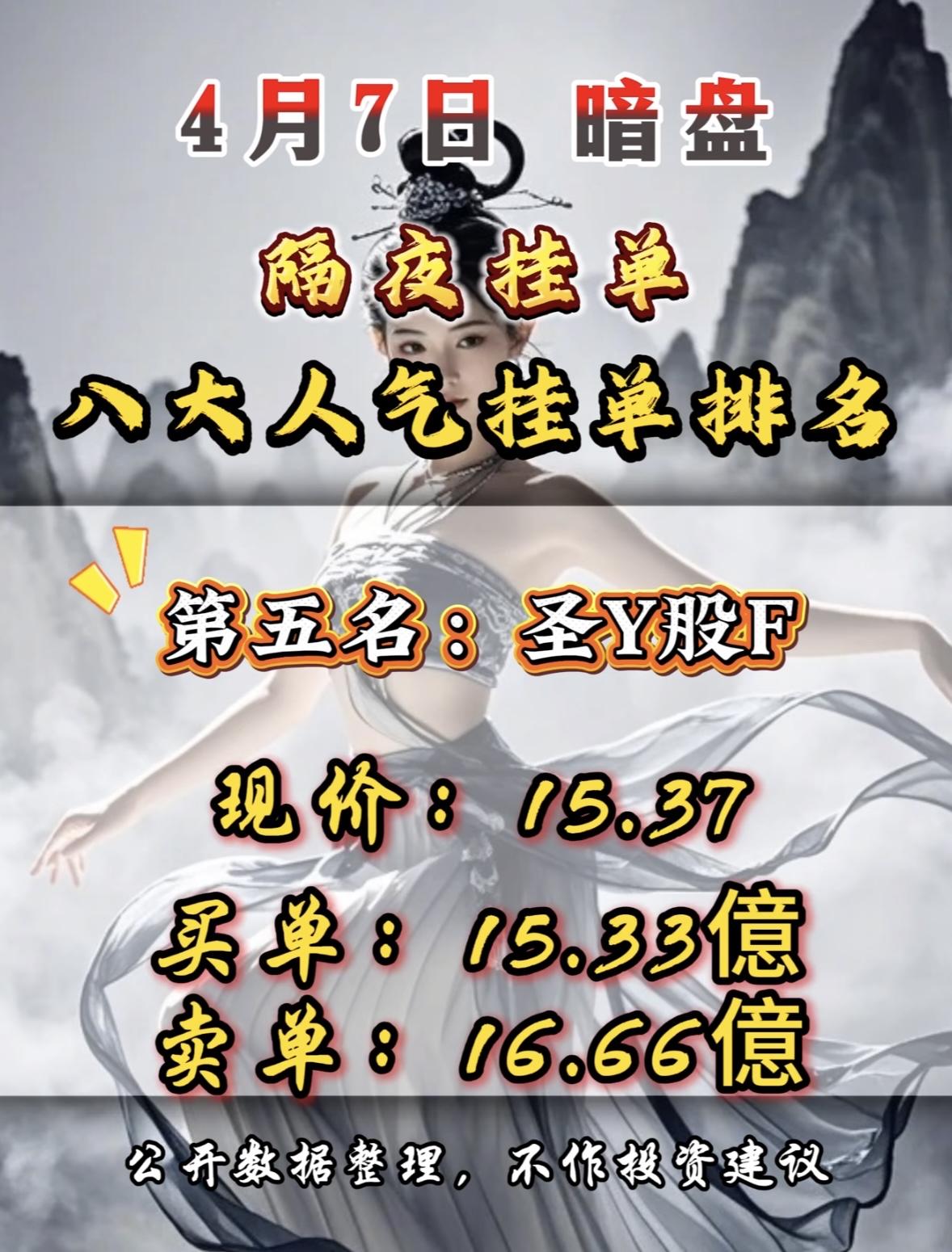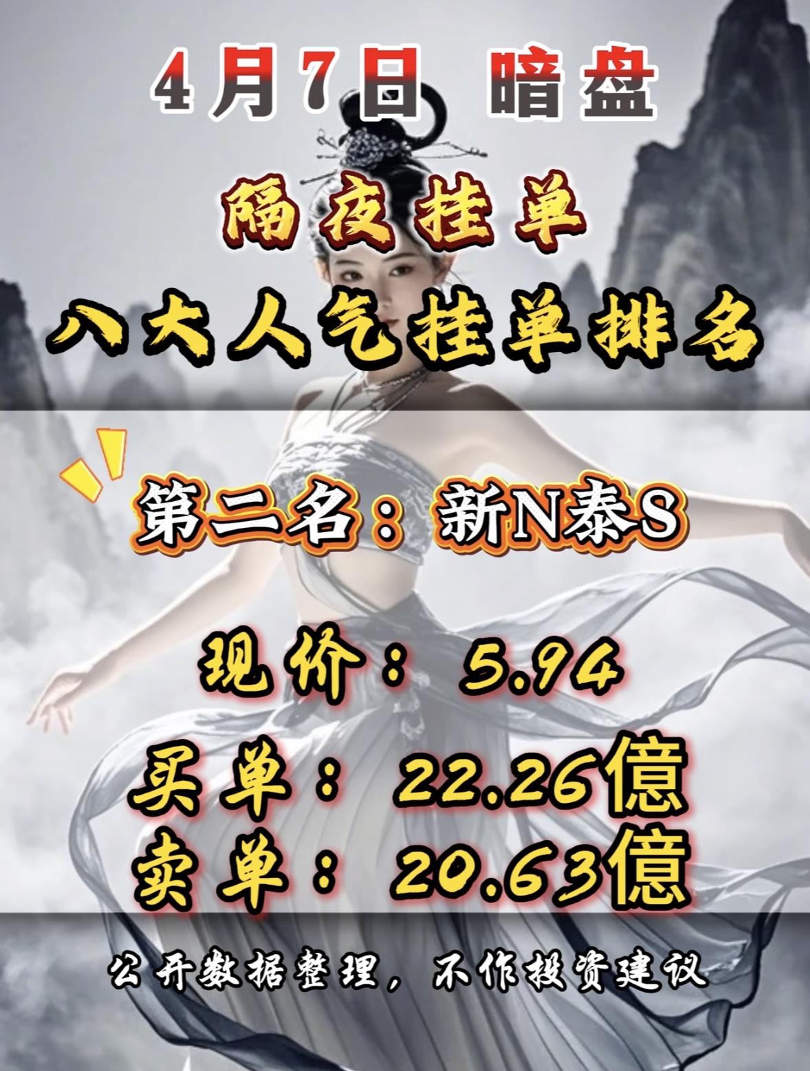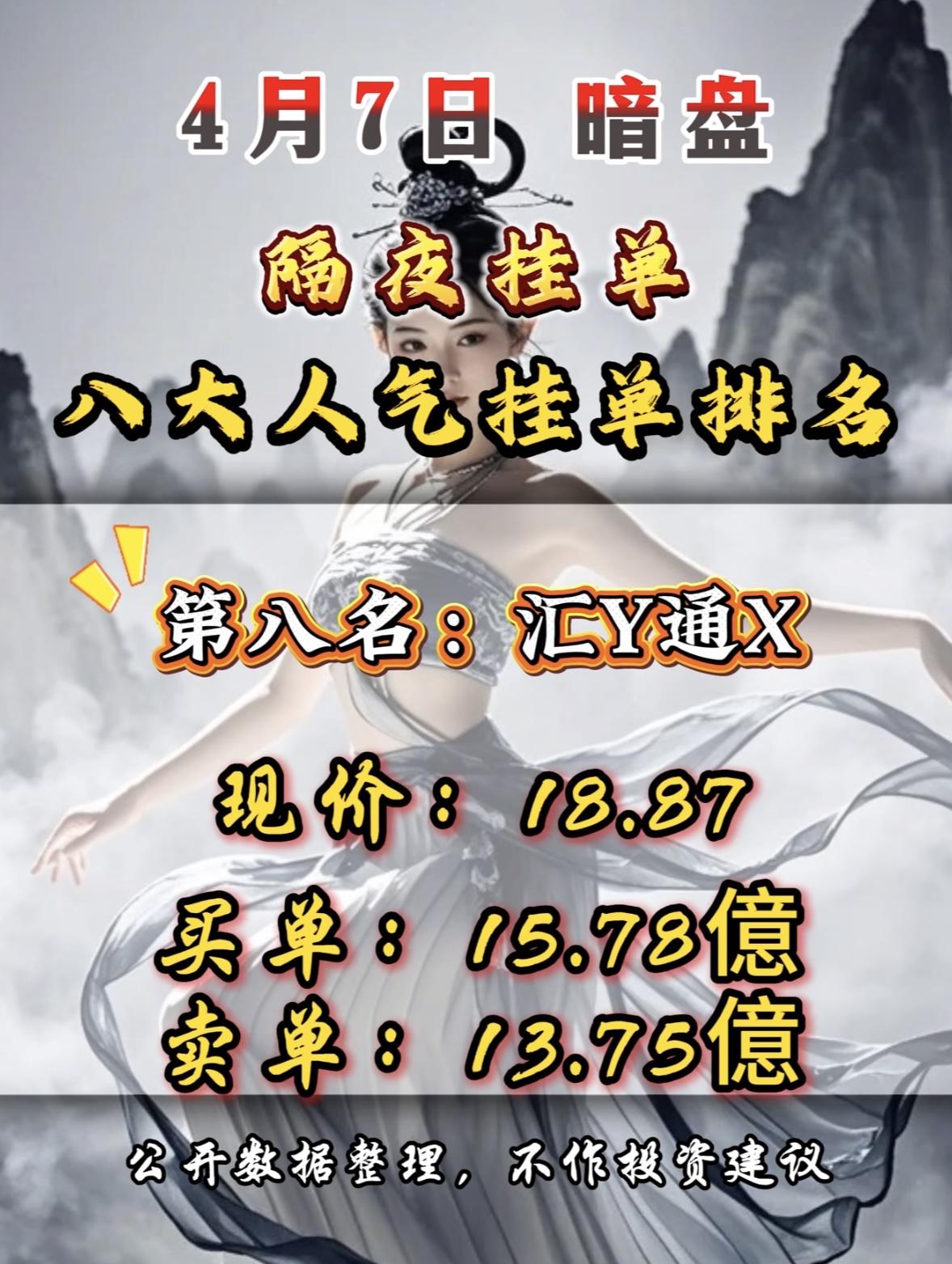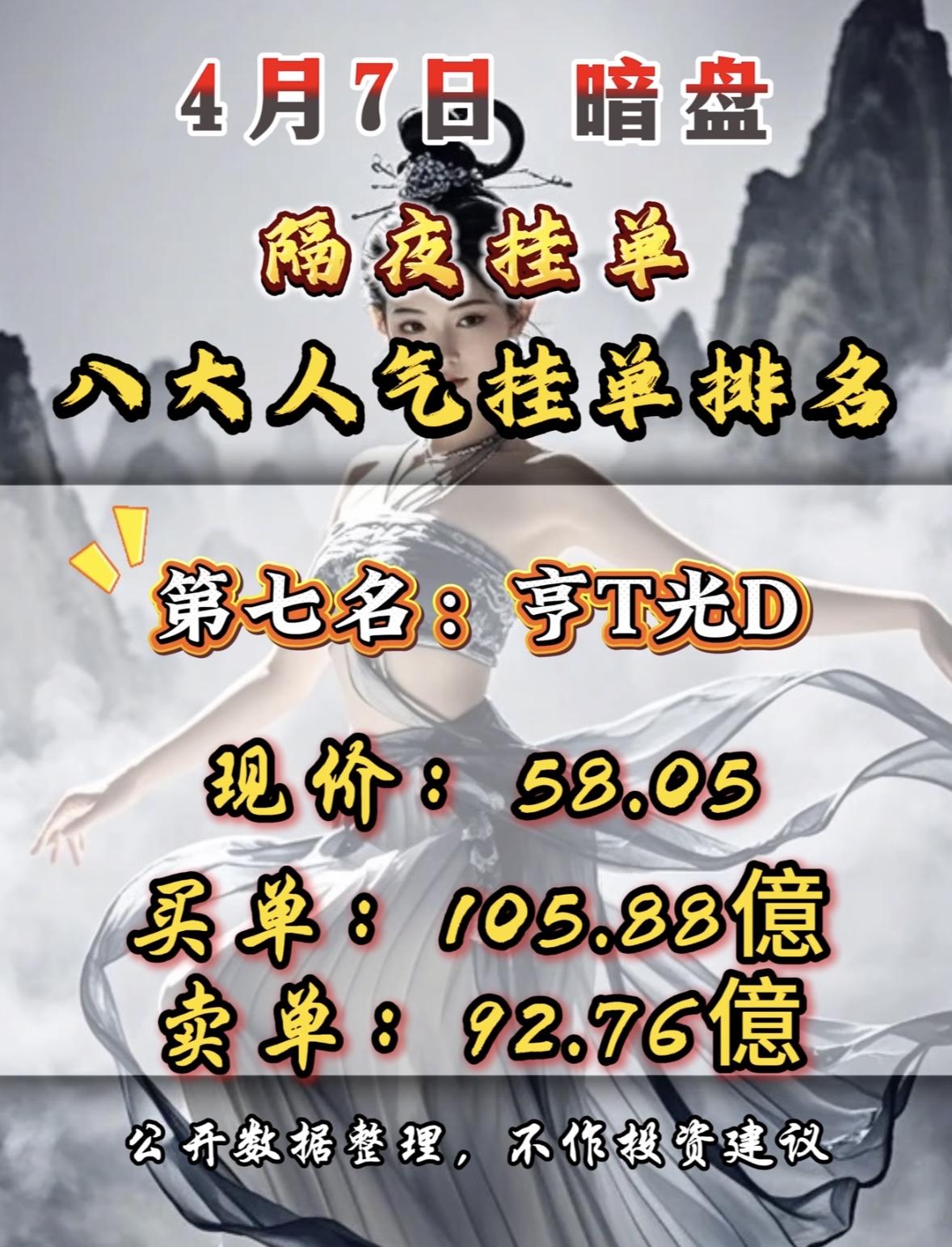 4月7日周二暗盘隔夜挂单排行榜揭晓 暗盘隔夜挂单排行榜一出炉,交易场上那可真是