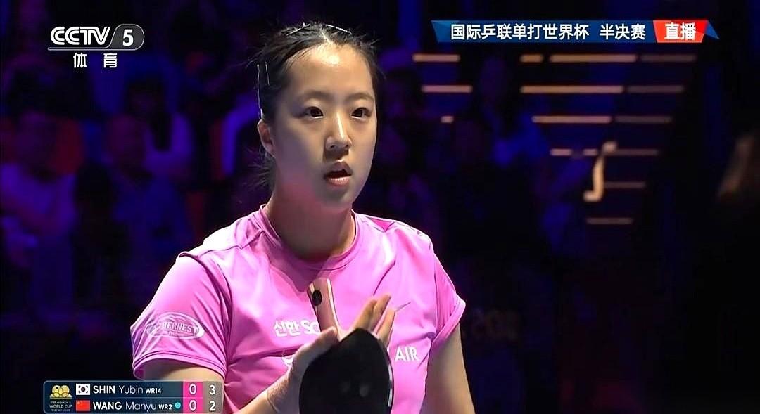 王曼昱对阵申裕斌。开局没多久,记分牌上的数字就让看台上的气氛变了:1比2,王曼昱落后。 对面的申裕斌像是拿了“拼命”的剧本,只要球一出台,她就整个人抡圆了胳膊爆冲,球砸在台面上发出的响声干脆利落。王曼昱的反应明显慢了半拍,好几次球已经飞过去了,她的身体才刚做出启动的动作。 就在前一天,王曼昱刚跟削球手桥本帆乃香死磕了很久。这时候,她双腿像灌了铅,每一次侧身大范围跑动,呼吸声隔着屏幕都能听见。 第四局,申裕斌越打越疯,连续几个大角度提速。王曼昱站在原地,眼睁睁看着球从身侧飞过,手里的球拍晃了一下,没能压住。 局分咬到2比2平。 关键时刻,王曼昱站在台角,低头盯着手里的球,突然换了反手发球。 那一球发得极刁,带着诡异的侧拐,申裕斌还是按照惯性去挡,结果球刚碰到胶皮就直接窜出了界外。申裕斌盯着球台看了一眼,抿了抿嘴,手心在裤缝上蹭了蹭。 紧接着又是同样的套路,王曼昱不断通过落点变化调动对手。虽然申裕斌还在咬牙发力硬顶,但那种“乱拳打死老师傅”的气势被强行按了下去。 4比2,王曼昱硬是凭着技术底蕴,把这块已经啃到一半的硬骨头拿下了。 今晚的决赛,她要面对的是孙颖莎。刚经历了两场高强度的消耗战,体力槽快要见底的王曼昱,还能在决赛场上跑起来吗?