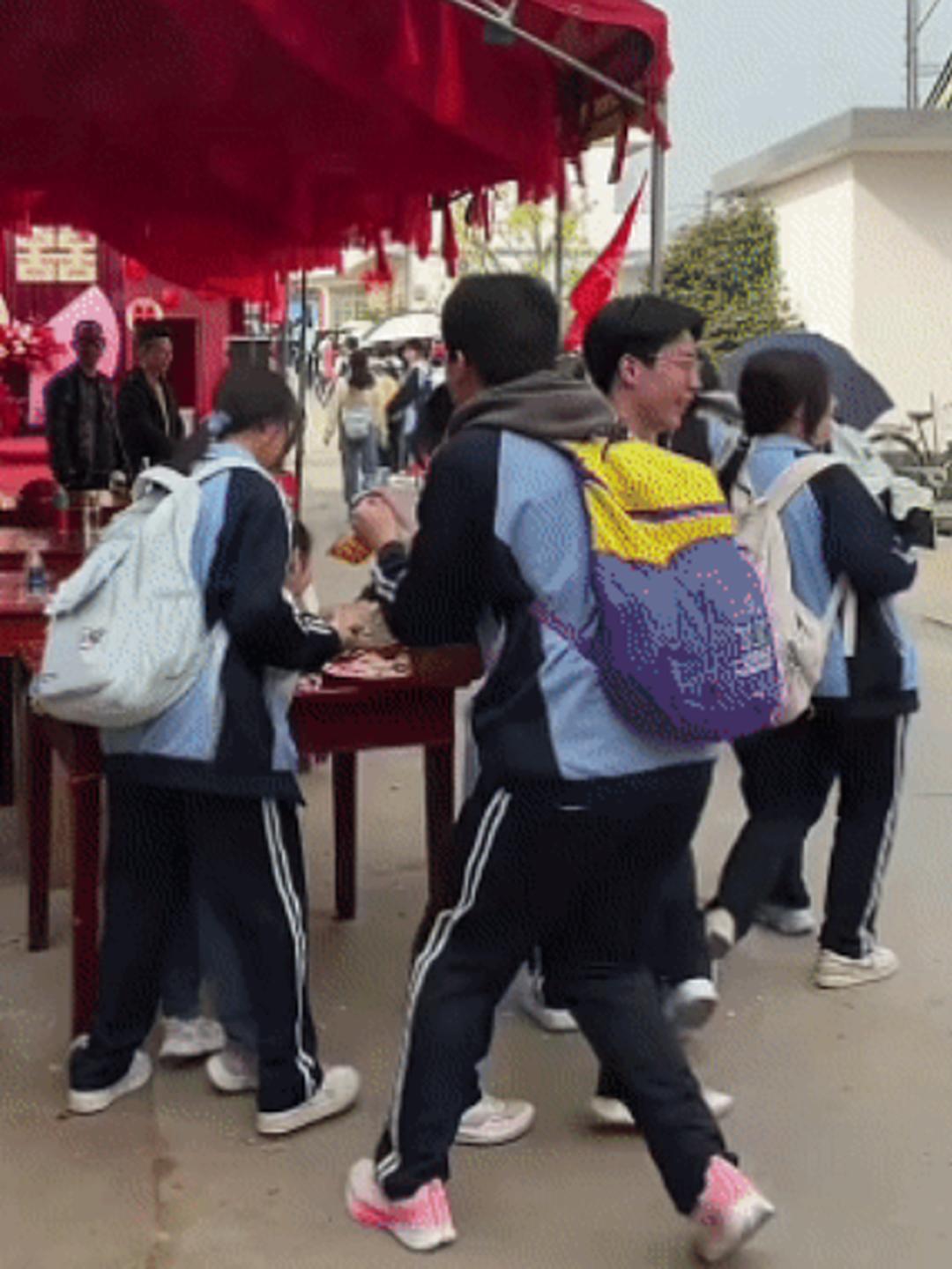 4月3日,陕西安康,一对新人结婚,在老家的村里举办了一场婚礼,婚礼上摆满了红色的桌子,就连地上的气球和头顶的帐篷都是红色的,现场满是喜庆祥和的氛围。谁知,就在婚礼即将谢幕时,突然,一群学生恰巧从现场经过,原来,他们是都是高一学生,他们此行的目的是为了去祭奠英烈,没想到,就这样和婚礼遇上了!新郎见状,自然不会放过这次百子送福的机会,于是,他立马叫上了亲朋好友,在桌子上摆满了喜糖和花生,而路过的学生们也不客气,双手抓起一大把花生,而且还很有礼貌的给新郎送上了祝福,新郎和亲友也被学生们送上的祝福笑的合不拢嘴。 这看似偶然的相遇,藏着最动人的人间温情,也藏着当代年轻人最该有的模样。清明前夕祭奠英烈,本是庄重肃穆的事,这群高一学生身着整齐的着装,脚步沉稳地奔赴陵园,心里装着的是对革命先烈的缅怀与敬意,没有丝毫嬉闹,这份初心就格外难得。要知道,现在很多年轻人容易被娱乐琐事分散注意力,能在清明时节主动参与英烈祭奠活动,踏踏实实传承这份家国情怀,足以看出学校的德育教育落到了实处,更能看出这群孩子骨子里的懂事与庄重。 而新郎的举动,更是透着农村人最朴实的善良与通透。换做旁人,或许会觉得队伍经过打乱了婚礼的收尾节奏,可他第一时间想到的不是麻烦,而是“百子送福”的好兆头,更是打心底里敬重这群心怀英烈的孩子。他没有丝毫犹豫,立刻招呼家人摆上喜糖花生,用最传统的喜庆礼遇,回应孩子们的庄重之行,这份包容与善意,没有半点刻意做作,全是发自内心的真诚。 更让人动容的是孩子们的反应。他们没有因为热闹的婚礼分心忘形,也没有扭捏回避,大大方方接过喜糖花生,第一时间送上真挚的新婚祝福,语气诚恳又有礼貌。一边是承载着家国纪念的庄重之行,一边是满是人间欢喜的新婚之喜,两种截然不同的氛围碰撞在一起,没有丝毫违和,反而生出了最和谐的暖意。这其实就是最好的教育范本,孩子们懂得敬畏历史,新人懂得尊重善意,双向奔赴的温柔,远比刻意营造的热闹更打动人。 近些年,类似的暖心场景其实并不少见。有学子赶考途中遇婚礼,新人主动让路送祝福;有群众祭祀遇喜事,双方互相礼让尽显素养,这些小事看似普通,却藏着中国人刻在骨子里的温良。我们既要铭记英烈、传承红色精神,也要珍惜人间烟火里的幸福与善意,二者从来不是对立的,正是因为有先烈的负重前行,才有了如今我们安稳的婚礼喜庆、万家团圆。 这场偶然的相遇,没有惊天动地的情节,却用最平凡的举动,诠释了什么是家国情怀与人间温情的交融。新郎的善意,孩子的礼貌,都是当下社会最珍贵的小美好,也让我们看到,年轻一代没有忘记历史,普通人的心里始终藏着善意与敬畏。 各位读者你们怎么看?欢迎在评论区讨论。