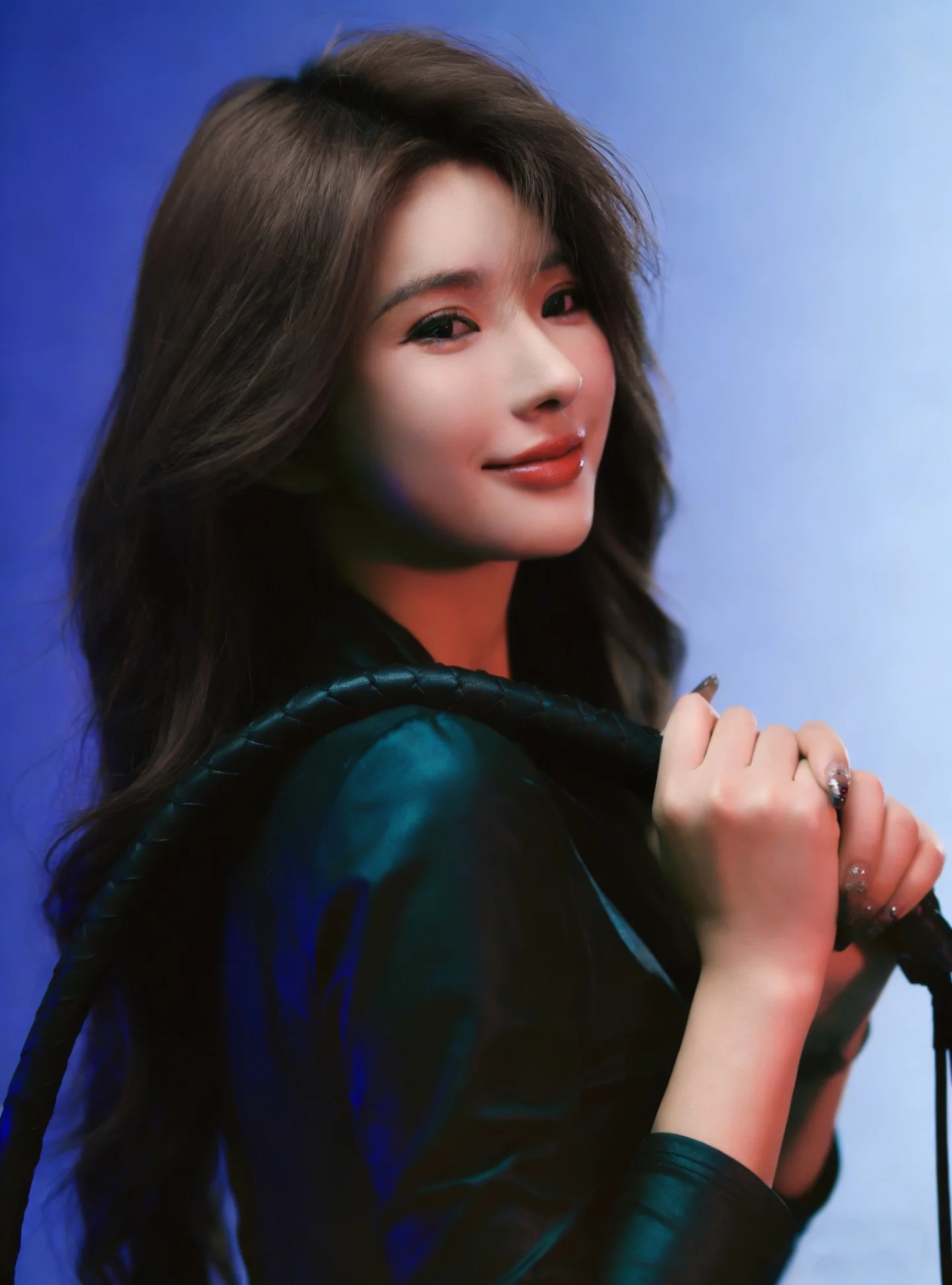 一袭长裙的御姐型美女,那气场简直绝了。就说穿搭,黑色丝绒包臀紧身长裙配黑色缎面吊