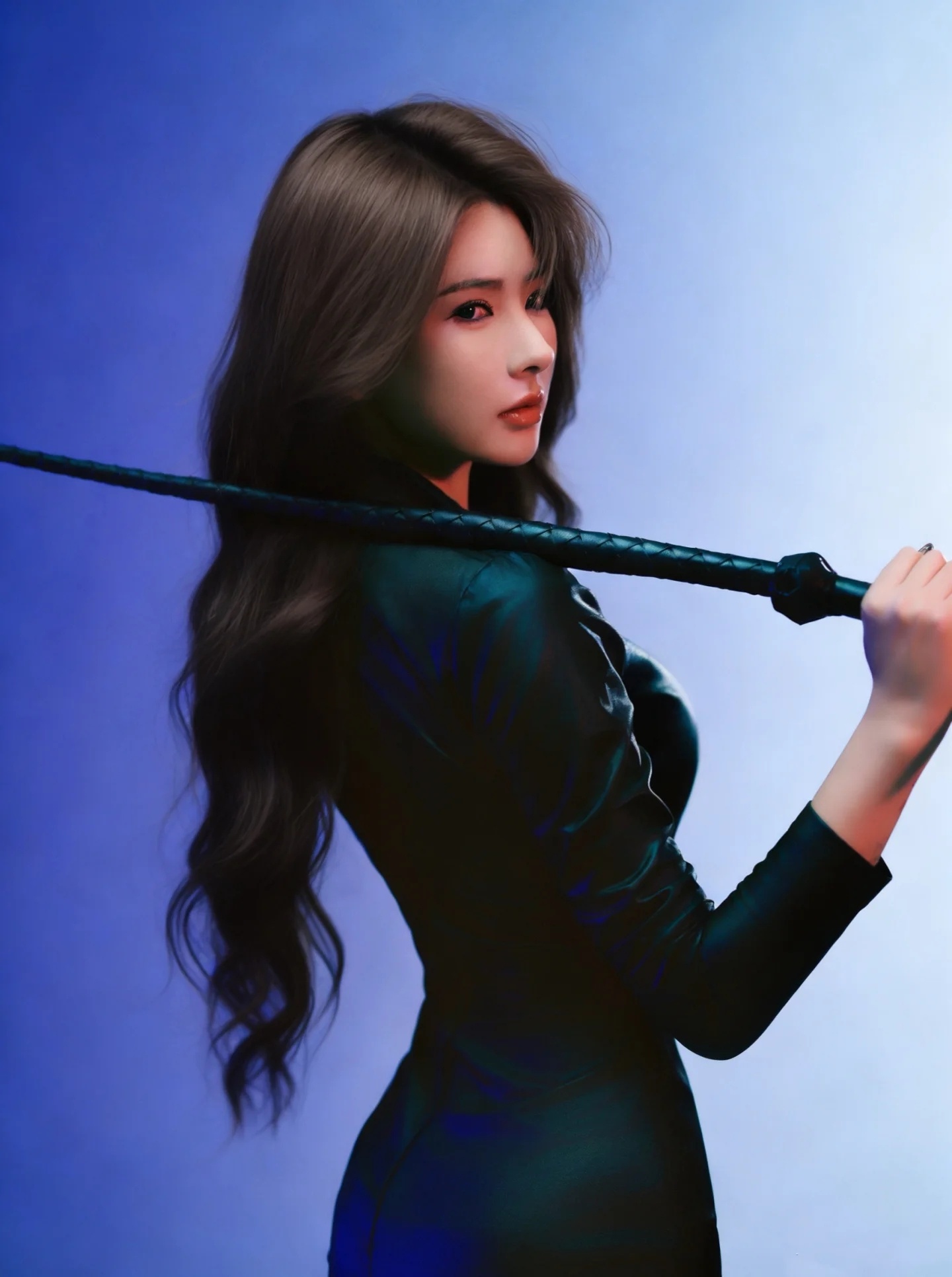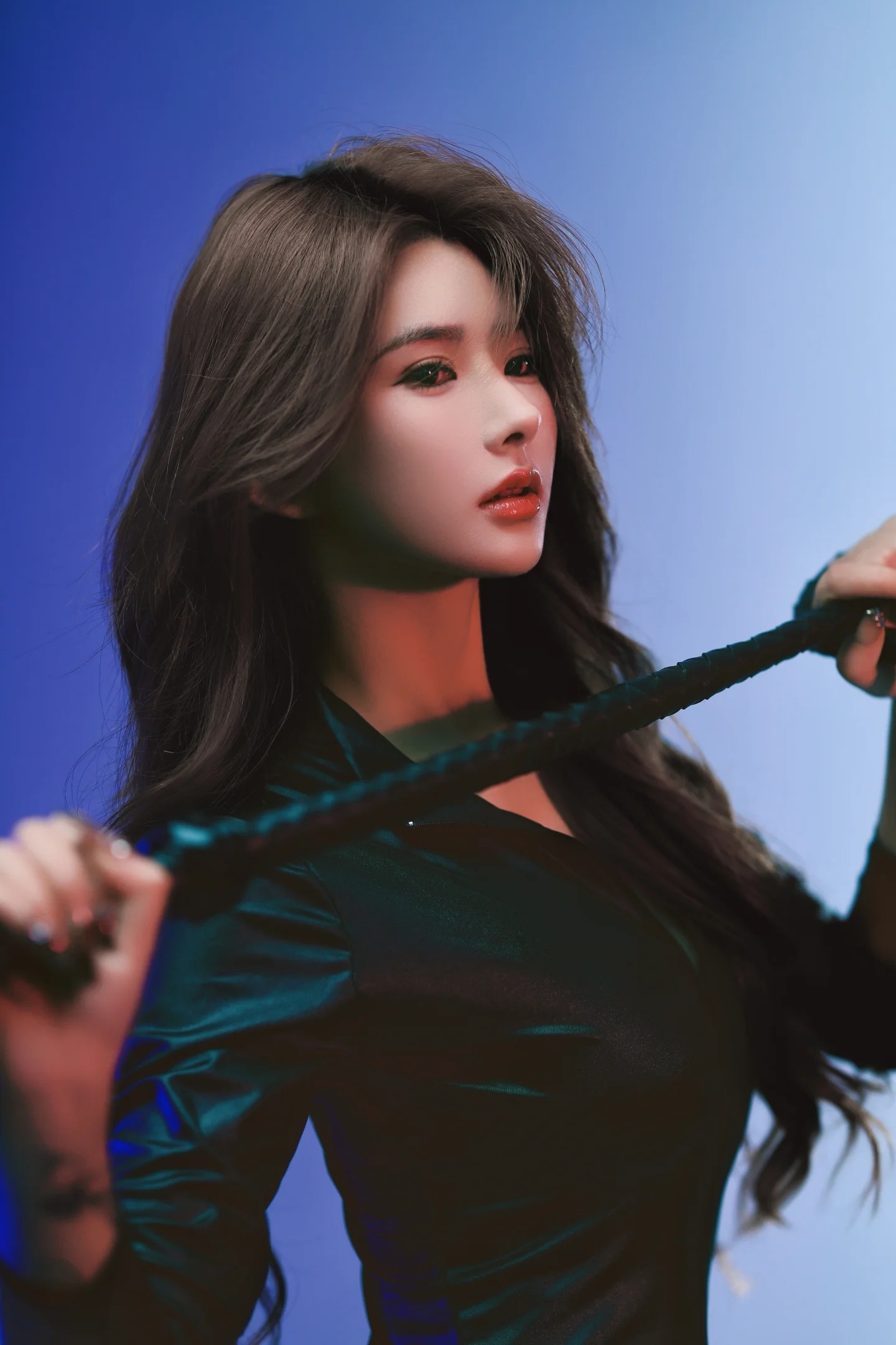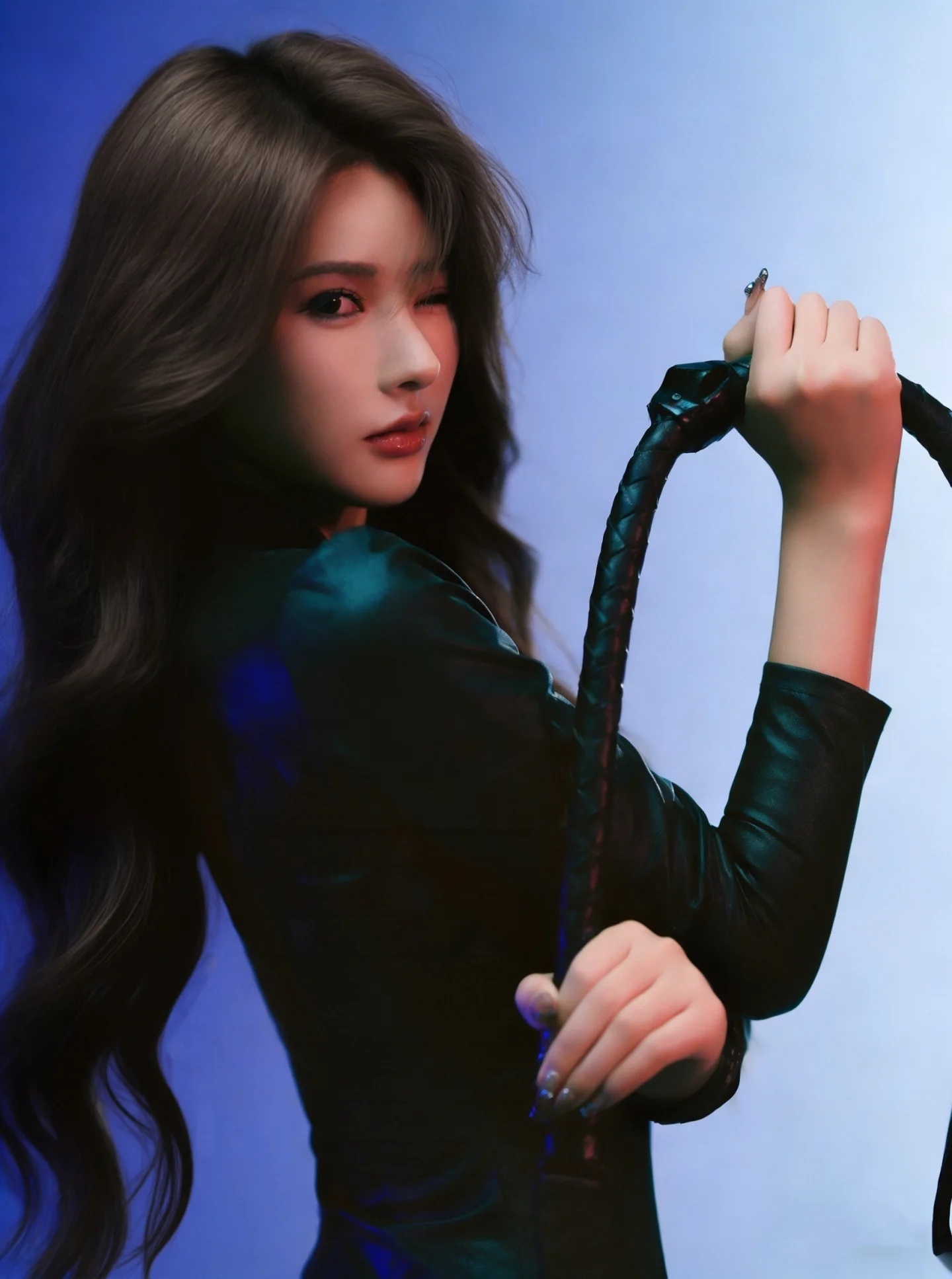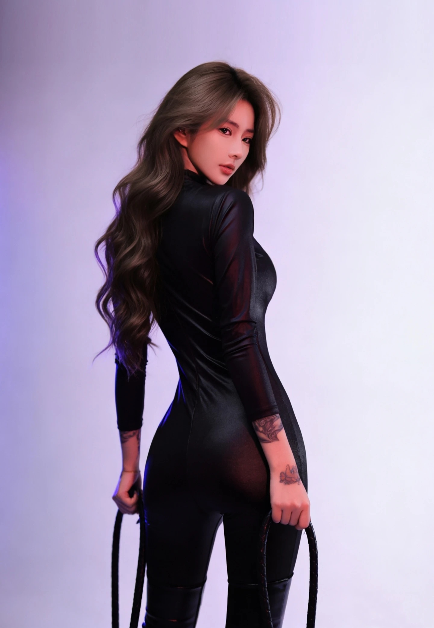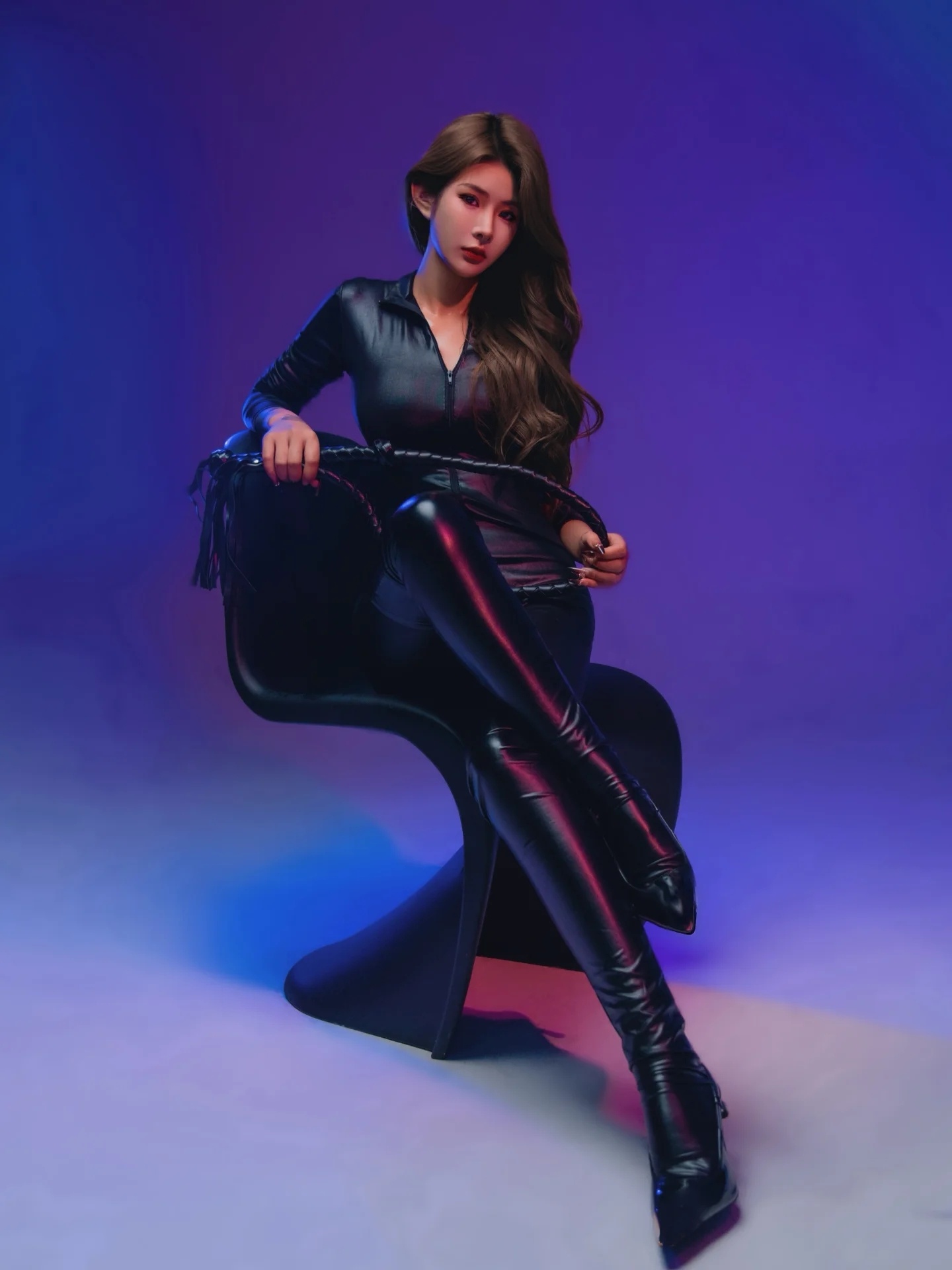 黑色紧身连体衣+皮鞭姐的主场