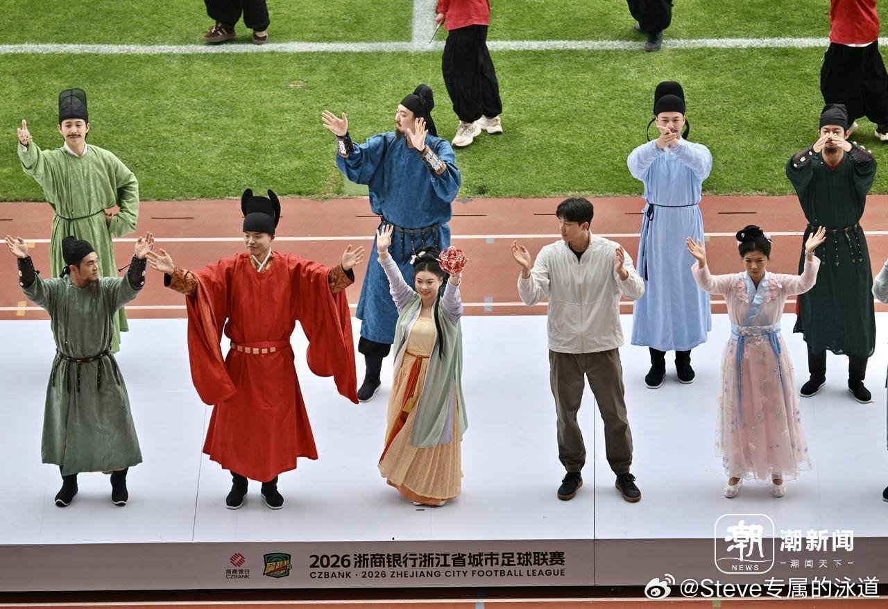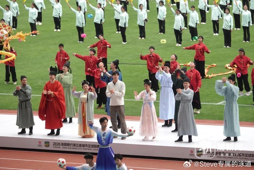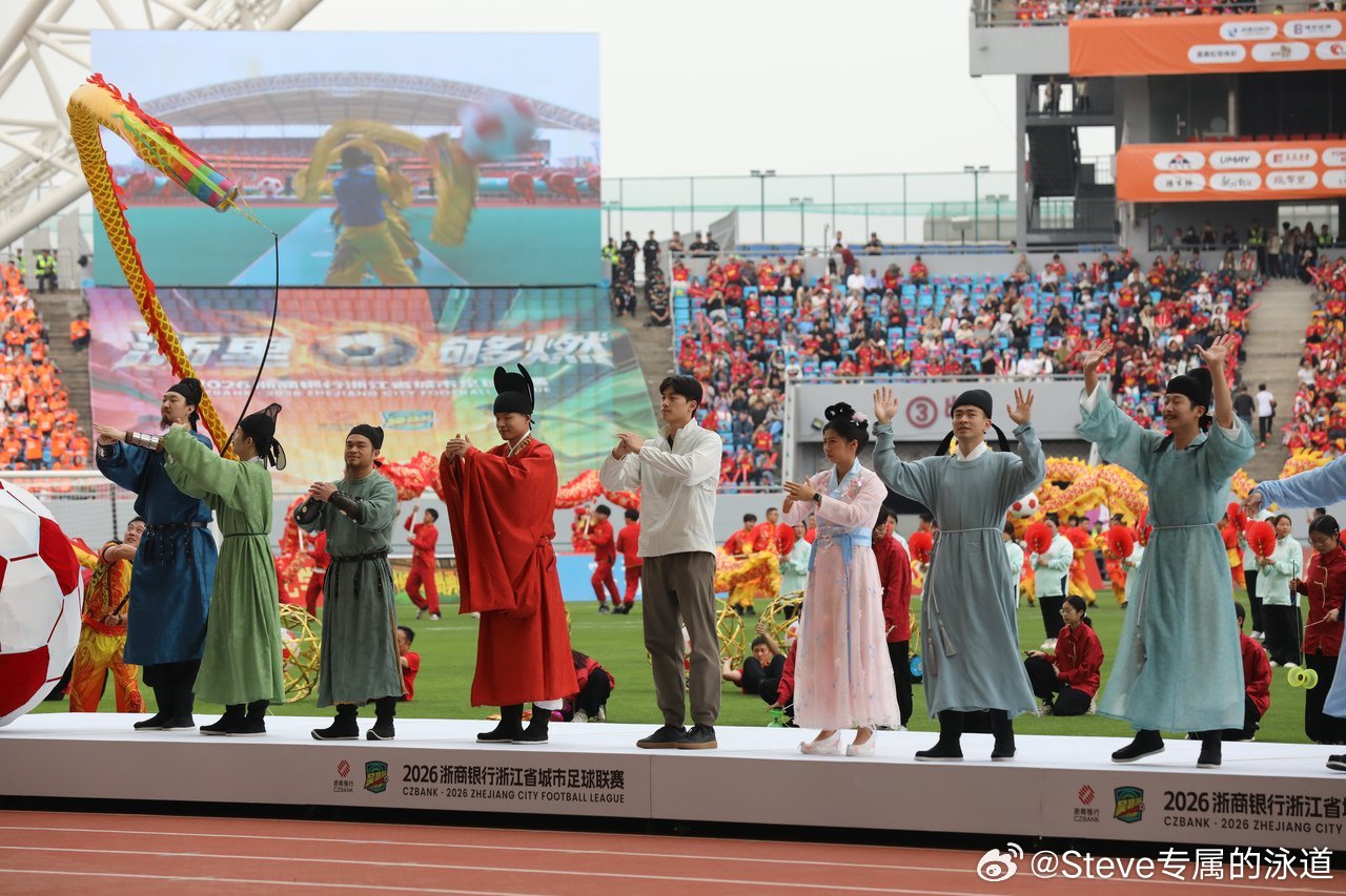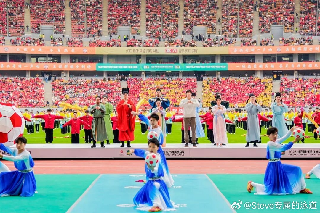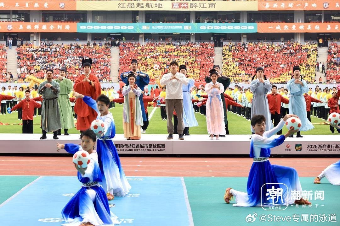 4月6日下午浙江省城市足球联赛“吴越杯”,在嘉兴市体育中心体育场揭幕。汪顺、石智勇、郑思维、王懿律、管晨辰5位浙江籍奥运冠军亲临助阵,与数万名现场球迷一起为这场浙江本土的“草根世界杯”拉开帷幕(图/潮新闻/体坛报)吴越杯浙里足够燃汪顺的2026顺流而上吴越杯