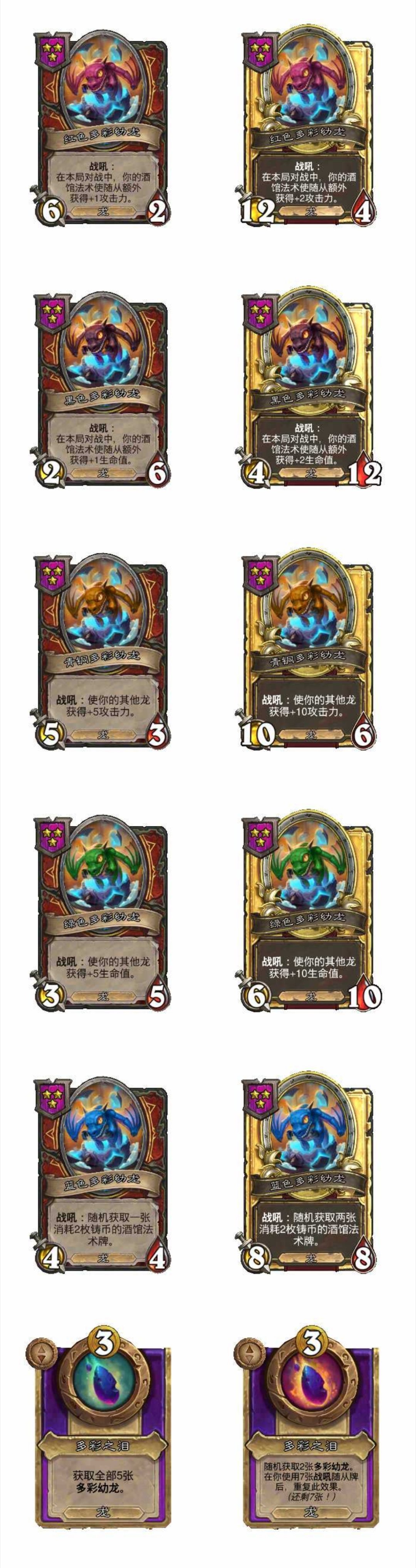 每条多彩幼龙都能提供独一无二的效果,在强化你的龙随从的同时,还能增强你的酒馆法术。