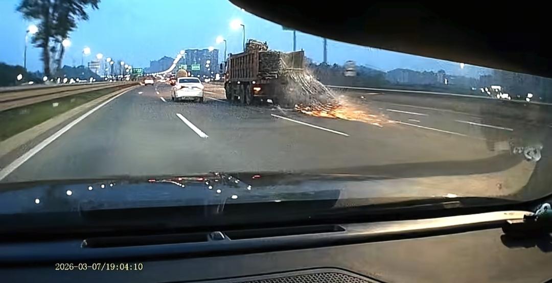 如果在高速上开车你碰到这种情况, 第一反应是什么。 第一,切记不要慌乱,预判该加速还是减速。 第二,根据位置做出相应的决定。 第三,愿所有人无祸无灾。 第四,大车拉货物一定要捆绑牢固。且设置防止坠落措施。高速驾驶常识