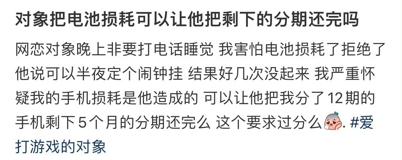 对象把电池损耗可以让他把剩下的分期还完吗 ?