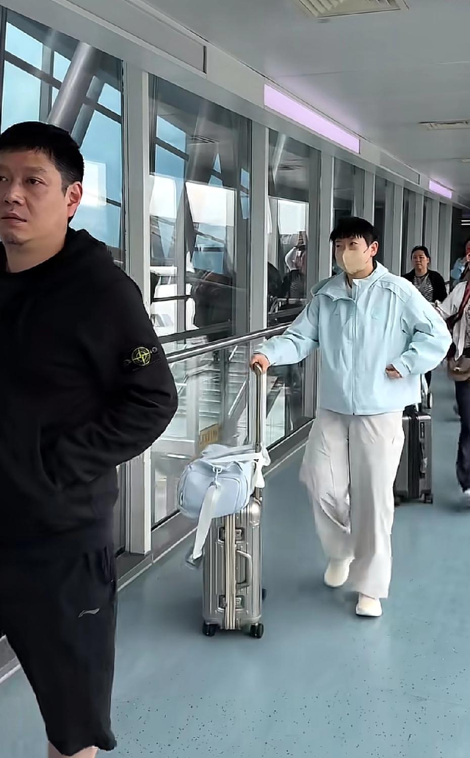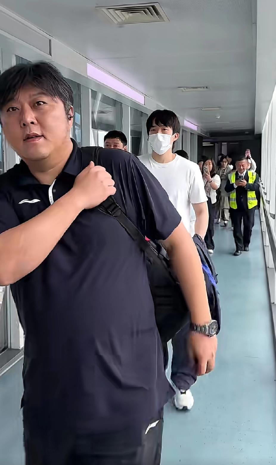莎莎和楚钦昨日回成都封训 路上全程都有各自的主管教练陪伴 他们俩总是被围堵 没有