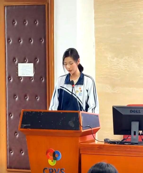 北京一职高女生在校活动上台发言,头发梳得特精神校服穿得板正,她就随手拍了点照片视
