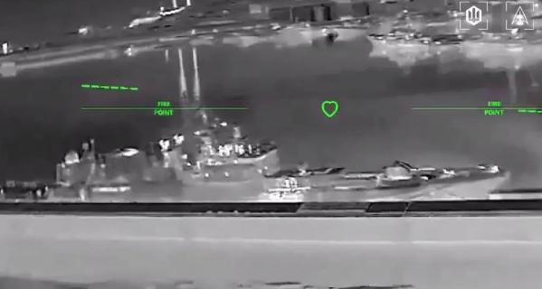 图文:乌军无人机击中俄新罗西斯克港的格里戈罗维奇海军上将号护卫舰 4月6日晚,