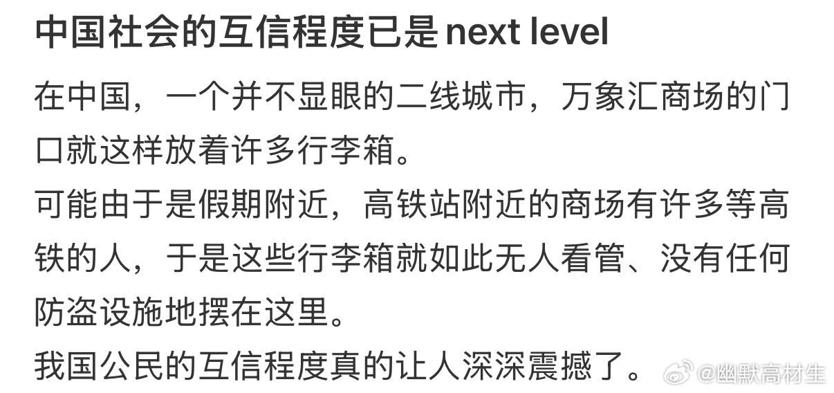 中国社会的互信程度已是Nextlevel