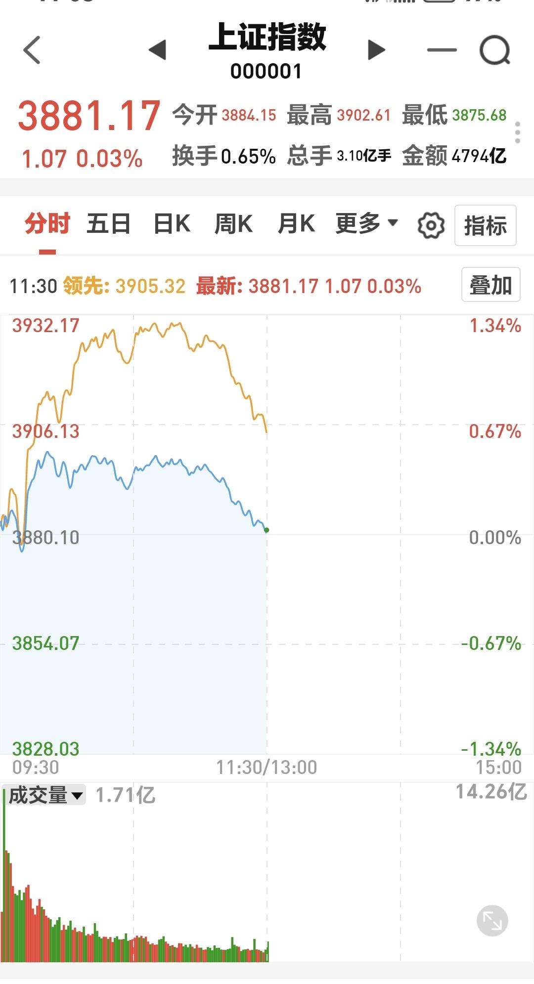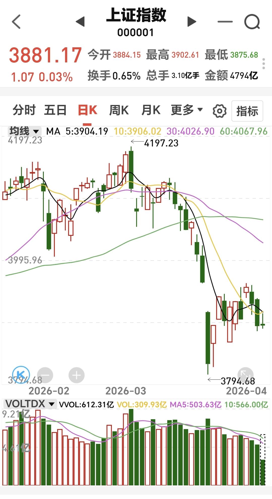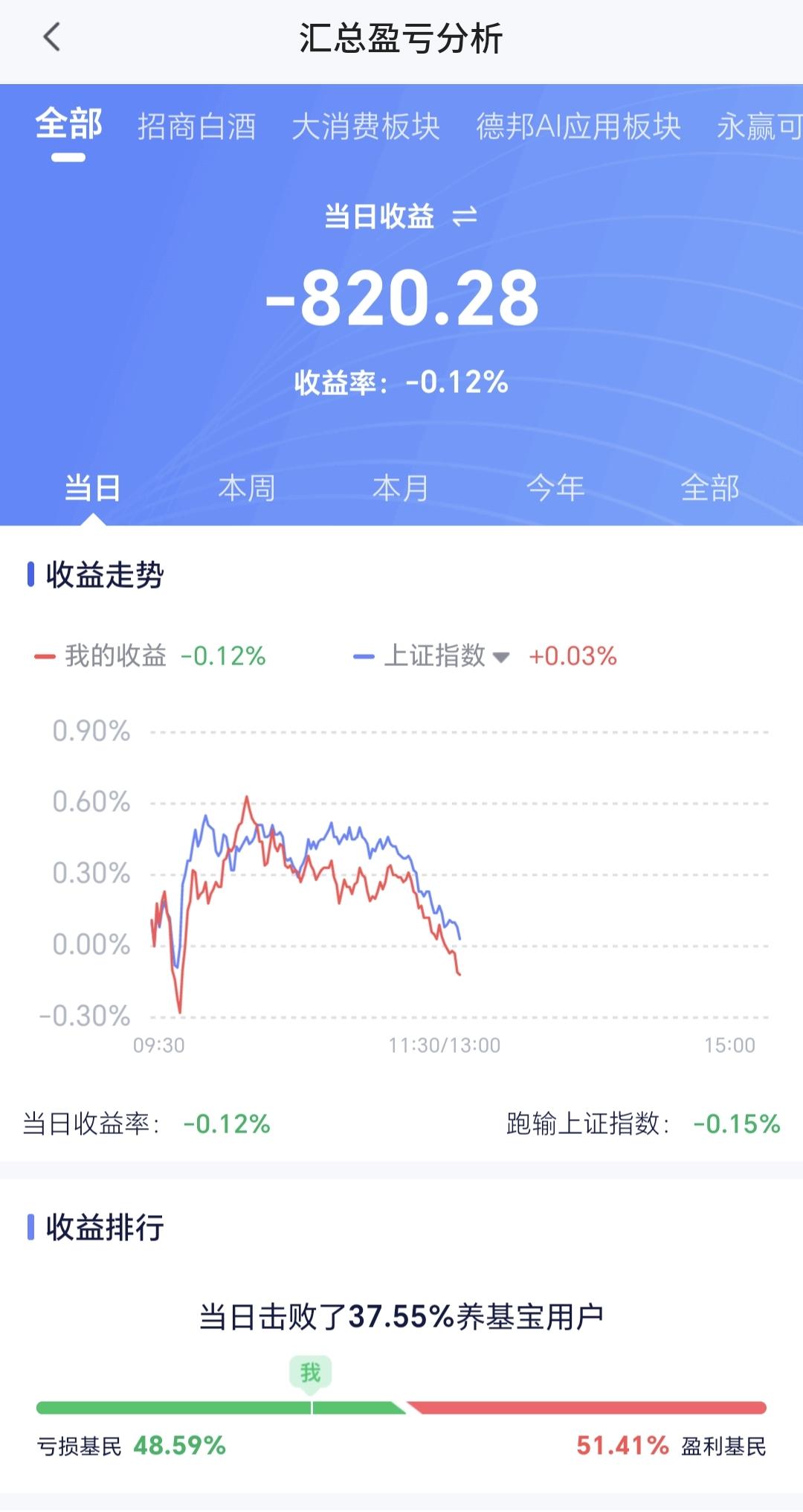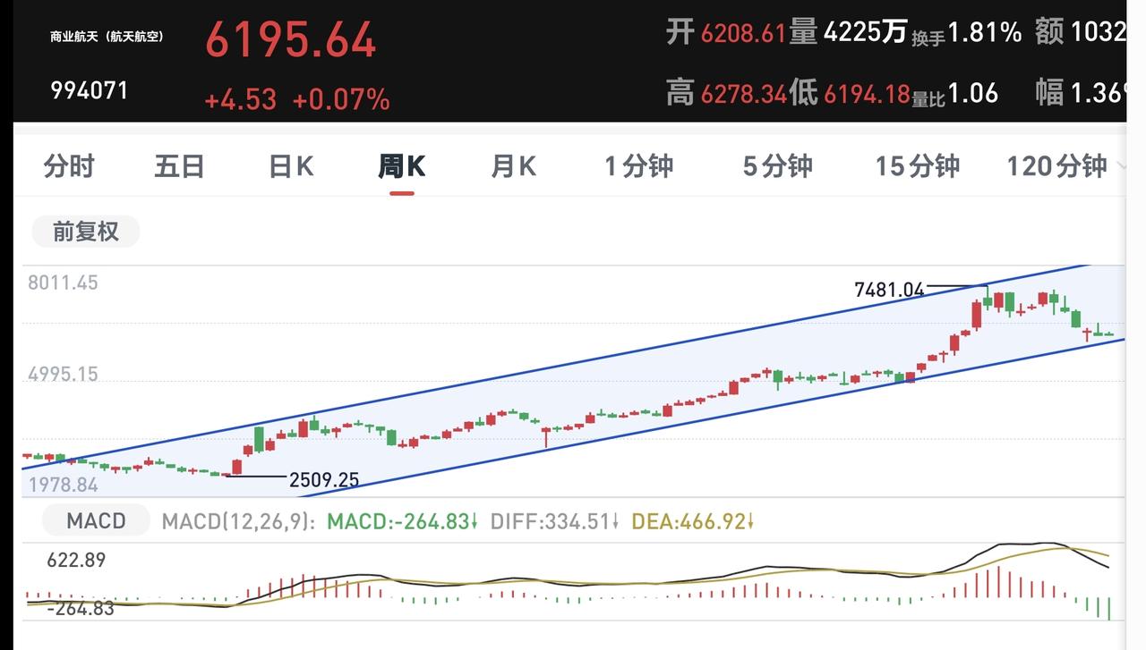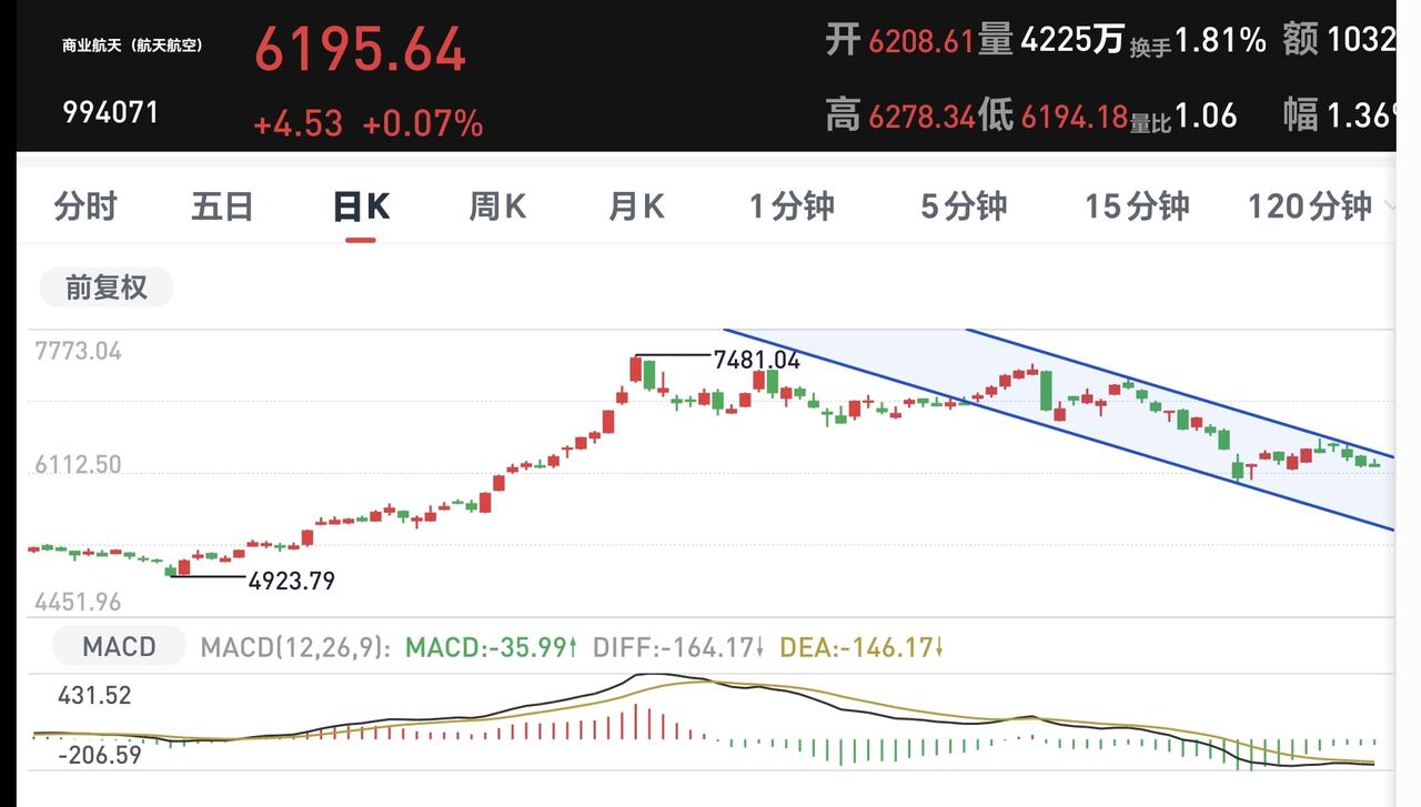 基金:商业航天板块的进场点 今天市场高开以后冲高回落,中午收盘的时候,三大指数涨跌不一,创业板指和深成指小跌,上证指数小涨,创业板指下跌了0.46%,收于3135点,上证指数上涨了0.03%,收于3881点。 中午收盘的时候,黄色线还是在蓝色线上方,两条线之间的敞口还是比较大,这样的情况之下,下午继续大幅度回落的概率不大。 两市累计成交10721亿,相比于昨天同期放量了1%,市场上涨3622家,下跌1745家,上涨家数超过了下跌家数,涨停73家,跌停17家,主力资金净流出90亿。 整个市场主力资金净流入最多的三个板块是:芯片板块,半导体板块,科创板芯片,主力资金净流出最多的三个板块是:高端制造板块,通信板块,通信设备板块。 整个市场上涨幅度最大的三个板块是:存储芯片板块,农林牧渔板块,化工板块,下跌幅度最大的三个板块是:商业航天板块,交通运输板块,电网设备板块。 持有基金现在盘中估值亏损了820元,盈利金额最大的三个板块是:芯片半导体板块,先进制造板块,大消费板块,亏损金额最大的三个板块是:创新药板块,白酒板块,5G板块。 今天下跌幅度最大的是商业航天板块,盘中估值下跌了1.18%,是连续第三个交易日下跌,持有人数在所有板块当中排名第六位。 商业航天板块日线级别处于下跌通道中,距离下跌通道的上轨线比较近,近期观察是在上轨线附近遇阻回落,还是会上涨突破这条上轨线,如果能够上涨突破这条上轨线,短线的人可以考虑要不要进场。 商业航天板块周线级别处于上涨通道中,距离上涨通道的下轨线比较近,如果在这里不跌破这条下轨线,想进场的人可以考虑要不要进场,这是一个很好的进场点,如果有效破位这条下轨线,长线持有的人需要注意风险。 今天上午虽然是冲高回落,但由于黄色线高高在上,下午大幅度下跌的可能性不大,大概率还会是继续震荡。 在外部局势不明朗的情况之下,大资金也不敢轻易妄动,如果在明天上午8点钟之前,美国与伊朗能够达成协议,大幅度反弹应该是大概率的,如果在明天上午八点钟之前,达不成协议,而且没有继续交流的情况下,来一个下杀,杀出黄金坑也不是没有可能,究竟能不能达成协议,这是谁也不能判断的事情,保持现有仓位观望是最好的应对。 大家帮忙评论点赞,转发和分享,谢谢大家的支持。
