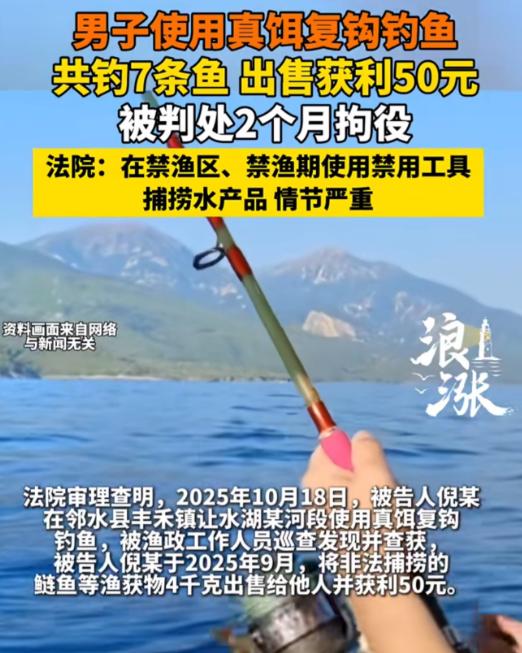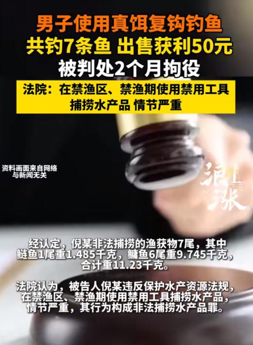 四川邻水,68岁老汉用真饵复钩钓了7条鱼,想着这么多鱼自己吃不完,就顺便卖了几条出去,还赚了50元,谁知,一个月后,被渔政工作人员当场抓获,并告知是违法行为。结果,被法院判处2个月拘役,缓刑3个月。老汉傻眼了。 四川邻水县有个68岁的倪大爷,平时没啥别的爱好,就喜欢提溜着个钓鱼竿去河边打发时间,可谁能想到,这老爷子就因为嘴馋加上贪了点小便宜,硬生生把自己钓进了法院,还背上了一个刑事犯罪的案底,这事说起来,真够给所有喜欢野钓的钓友们提个大醒的。 2025年9月,那时候,倪大爷拎着渔具跑到了邻水县丰禾镇让水湖的一段河沟里去过钓鱼瘾,他当时用了一种叫“真饵复钩”的钓法,也就是咱们钓鱼圈里常说的爆炸钩或者串钩,一根线上挂了七个甚至更多的鱼钩。 大爷运气不错,钓上来不少鱼,他瞅着自己一个人也吃不完这么多,就顺手挑了4公斤卖给了旁边的人,赚了50块钱。 当时大家都没当回事,大爷自己也觉得这就是钓几条鱼换包烟钱,平常得很。 2025年10月18日那天,倪大爷又拿着那套带着好几个钩子的渔具,跑回了让水湖的老地方去钓鱼。 结果这回鱼刚咬钩拉上岸,就被巡逻的渔政执法人员逮了个正着,执法人员当场一数,好家伙,大爷这半天功夫钓上来7条鱼,一条大鲢鱼将近三斤重,还有6条鳙鱼加起来快二十斤,总共重达11.23公斤。 渔政人员回去一查记录,发现老爷子上个月在这个地方不仅钓了鱼,还卖了鱼,这下事情的性质可就变了。 为啥钓几条鱼就犯法了呢?这就得掰扯掰扯倪大爷犯的几个致命错误了,首先就是他用的那套渔具。 这“真饵复钩”因为钩子太多,钓起鱼来简直是“大小通吃”,效率高得吓人,这种搞法特别容易把还没长大的小鱼籽或者肚子里带籽的母鱼给误伤了,对水里的生态破坏极大,所以早就被农业农村部列进了长江流域重点水域绝对不准用的“黑名单”里。 其次,大爷选的这个钓点也是个雷区,让水湖的这段河可是国家白纸黑字划定的禁渔区,属于长江流域重点保护的水域。 而且这个时候正是水里鱼虾繁衍生息的关键恢复期,别说是撒网捕鱼了,就是平时拿个单钩休闲钓鱼,也有极其严格的规矩。 大爷不仅在禁渔区、禁渔期顶风作案,用着国家严禁的钓具,甚至还把钓上来的鱼拿去卖钱,这就等于把原本消遣娱乐的休闲垂钓,直接变成了违法的生产经营性捕捞,属于明知故犯,错上加错。 按照咱们国家的刑法规定,你要是在禁渔区、禁渔期,或者用了不该用的工具去捕捞水产品,只要情节严重,那就得判三年以下有期徒刑、拘役或者交罚金。 倪大爷这波操作,直接把“禁渔区”、“禁渔期”和“禁用工具”这三条高压线全给踩了个遍,再加上他还卖过鱼,完全够得上“情节严重”的入罪标准了,妥妥的构成了非法捕捞水产品罪。 到了法庭上,倪大爷整个人都懵了,满脸的委屈和不服气,他一个劲地跟法官叫屈,说自己就是个退休老头图个乐呵,根本不知道用这种带好几个钩子的线是犯法的,也不知道那条河不让钓鱼,更想不通怎么就卖了50块钱的鱼,转眼就成罪犯了。 法官可不听他这一套说辞,法庭调查得清清楚楚:让水湖那片水域岸边明明竖着清清楚楚的禁渔大牌子,“真饵复钩”不让用这也是早就公开宣传过无数次的规定。 倪大爷作为一个常年混迹河边的老钓友,说自己啥都不知道,这根本站不住脚,他这不仅是违规钓鱼,还把鱼卖了钱,这性质可就恶劣了。 最后,邻水县人民法院一锤定音:倪大爷犯了非法捕捞水产品罪,判处拘役2个月,缓刑3个月。 法官也算是手下留情了,考虑到大爷岁数大了,钓上来的鱼也不算特别多,没给生态造成那种毁灭性的破坏,所以给了个缓刑,让他在社区里接受几个月的矫正教育,既给了个深刻的教训,又讲了点人情味。 这判决一出来,网上的网友们也是炸了锅,有人觉得这处罚太重了,觉得老爷子可怜,不就为了几十块钱的鱼嘛,至于给人家老头留个案底吗? 但更多的人是拍手叫好的,大家觉得,长江十年禁渔可不是闹着玩的,那是为了让子孙后代还能有鱼吃。 要是人人都觉得“钓几条鱼没啥大不了的”,今天你拿个串钩,明天他下个绝户网,那这水里的生态迟早得让人给祸霍干净了。 倪大爷这50块钱赚得可真是太亏了,不仅晚节不保背了个案底,以后出门钓鱼估计都有心理阴影了。 这事也给所有爱钓鱼的朋友们敲了个警钟:现在的野钓可不是你想怎么钓就怎么钓的,出门前先搞清楚你要去的地方是不是禁渔区,现在是不是禁渔期,千万别为了多钓几条鱼去用那些什么爆炸钩、可视锚鱼之类的禁用装备,老老实实一根杆子一个钩才是正道。 最重要的是,在禁捕的水域里,哪怕你就是运气好钓上来了鱼,也绝对不能拿去卖,哪怕卖一块钱,那性质都全变了。 信源:纵览新闻