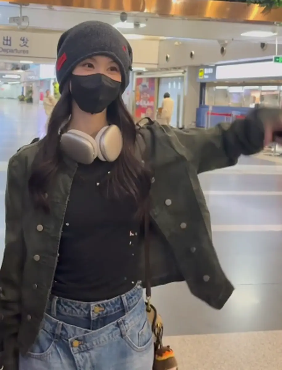 陈都灵戴冷帽搭耳机清爽利落 机场造型又酷又松弛