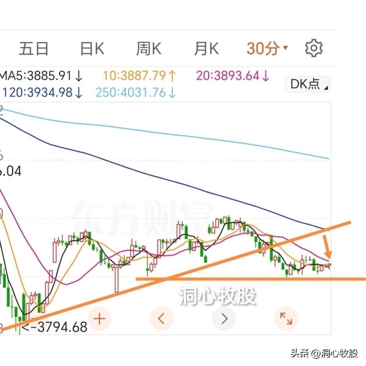 从30、60分钟k线图中可以看到,今天其实是在底部进行窄幅震荡。