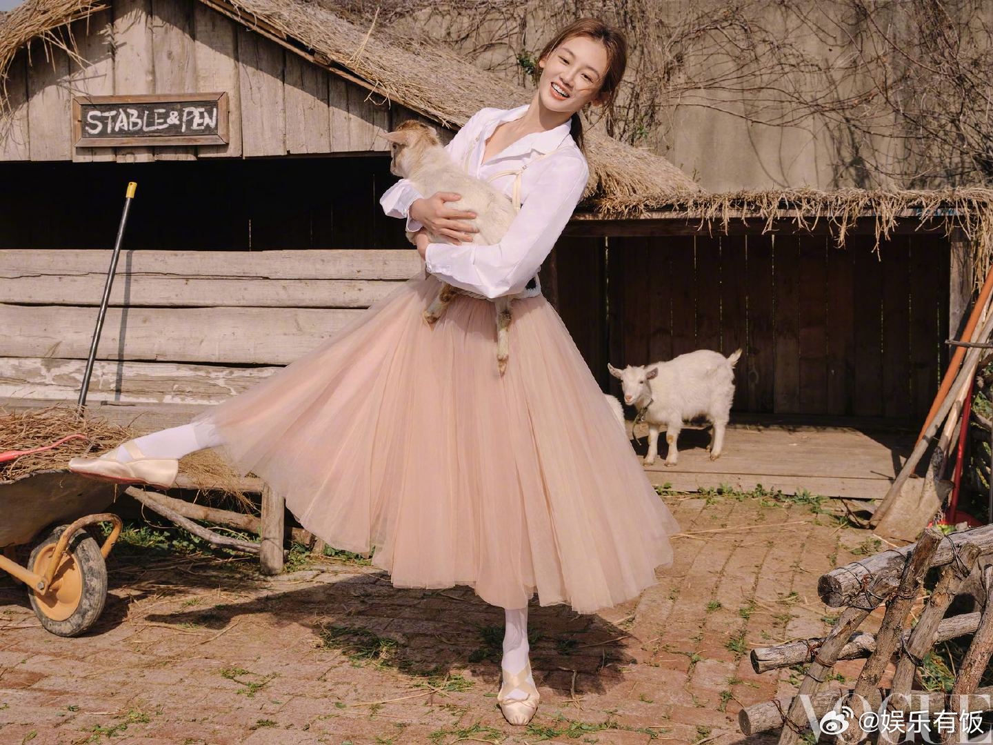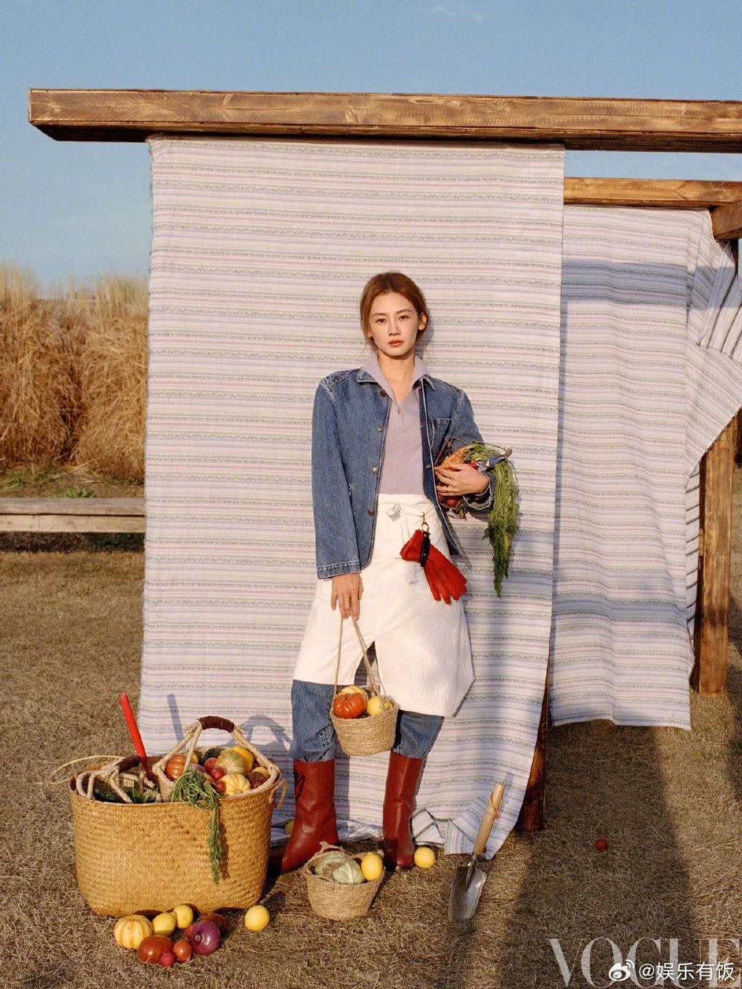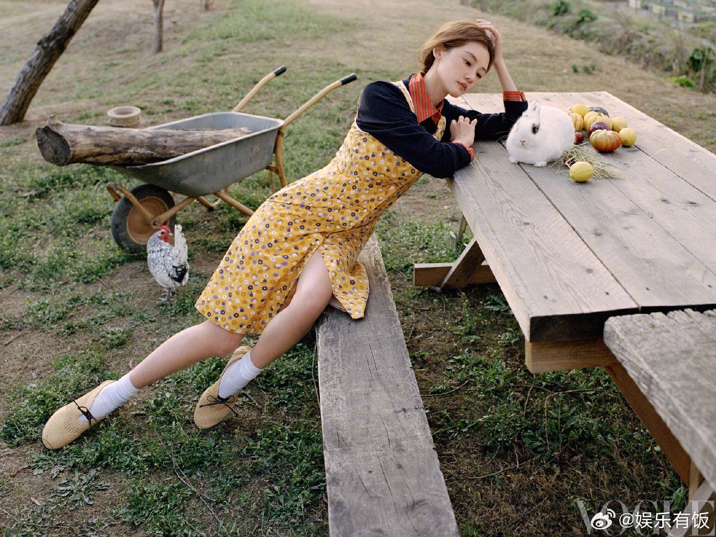 苗苗带着羊兔鸡出了一次通告 苗苗草田之上名字是郑恺想的 苗苗VOGUE4月刊大片