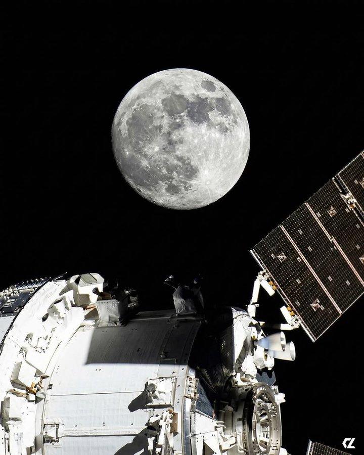 恭喜四位宇航员成为50多年来第一批亲眼看到月球背面的人类!他们已成功完成月球飞掠,目前正在返回地球的途中。根据NASA官方数据显示,猎户座载人飞船在2026年4月6日月球飞掠期间达到的最远距离为约252,756英里(约406,771公里),这打破了阿波罗13号在1970年保持了56年的纪录(248,655英里),超出了约4,100英里(约6,600公里)。 第一张照片捕捉到了NASA阿尔忒弥斯二号太空任务的一个历史性时刻,照片显示猎户座飞船靠近月球,地球在远处清晰可见。