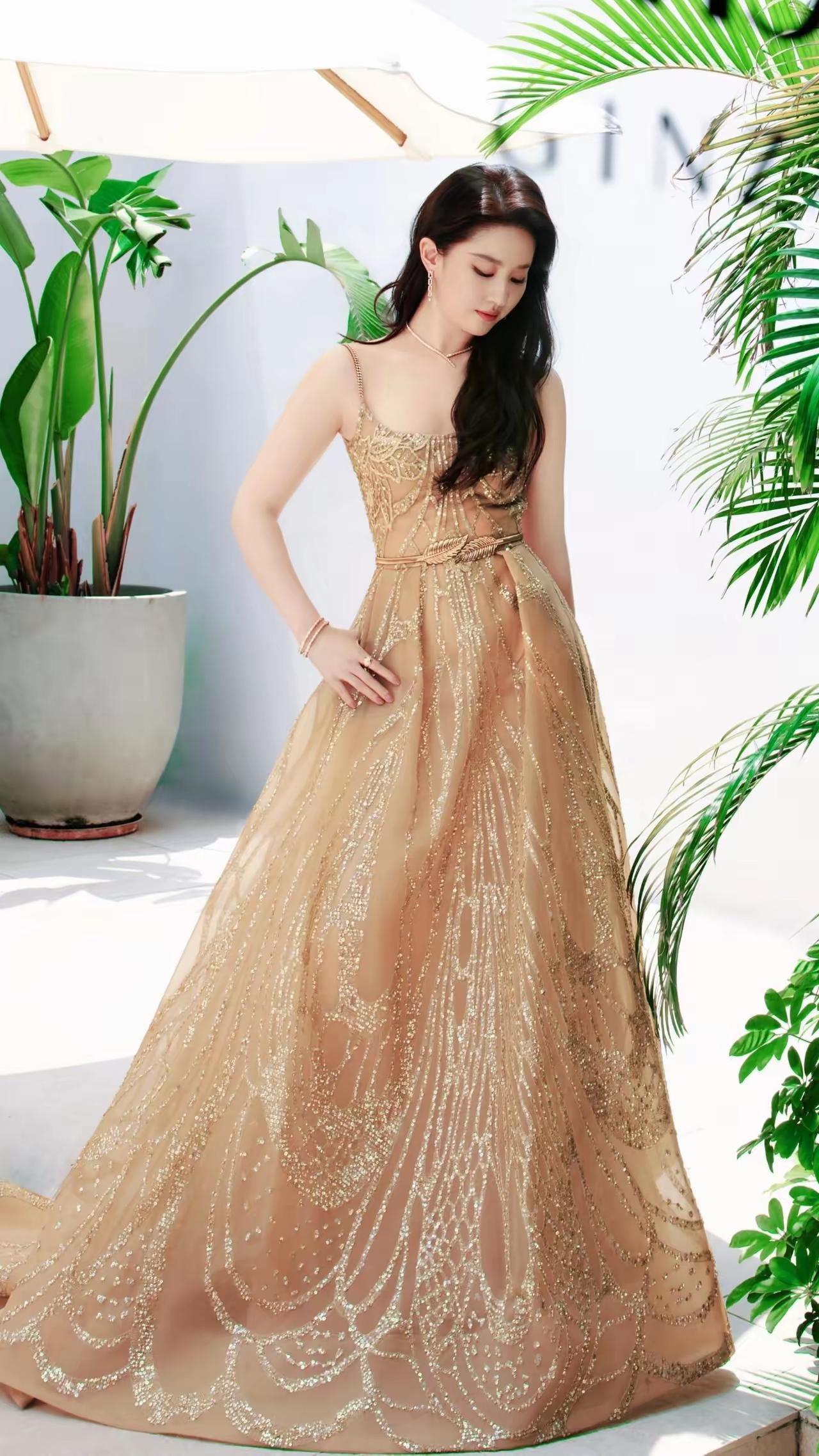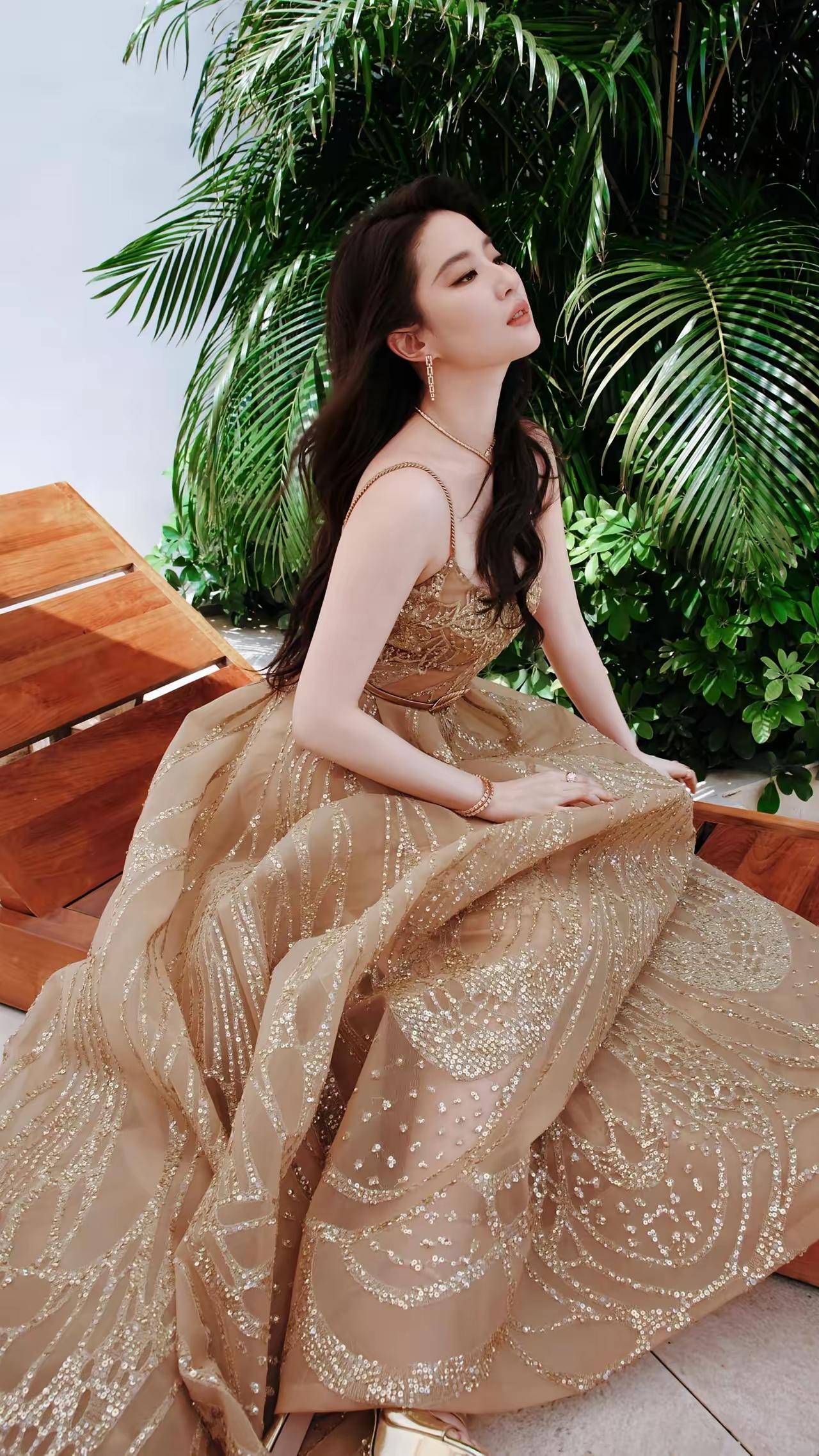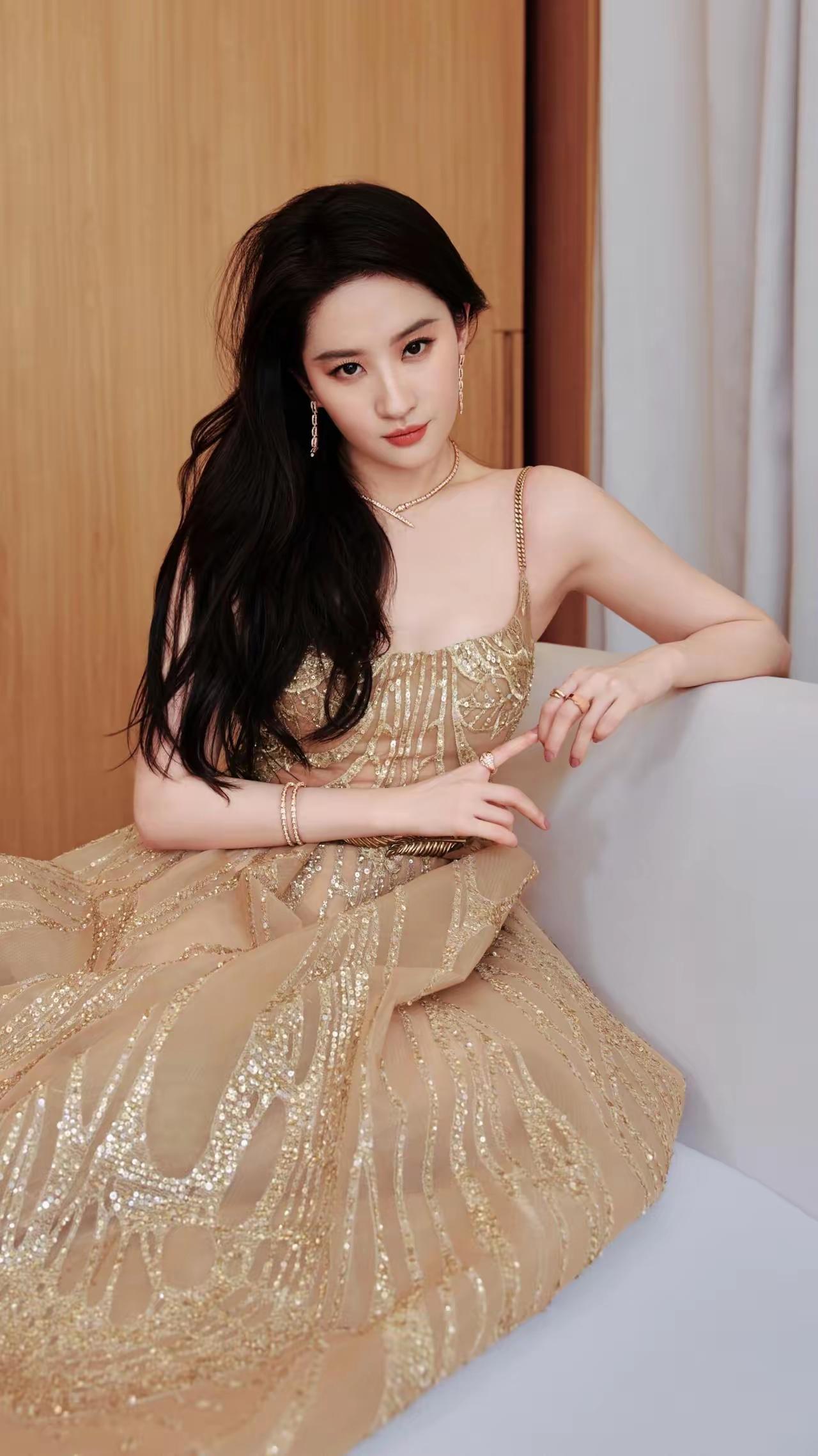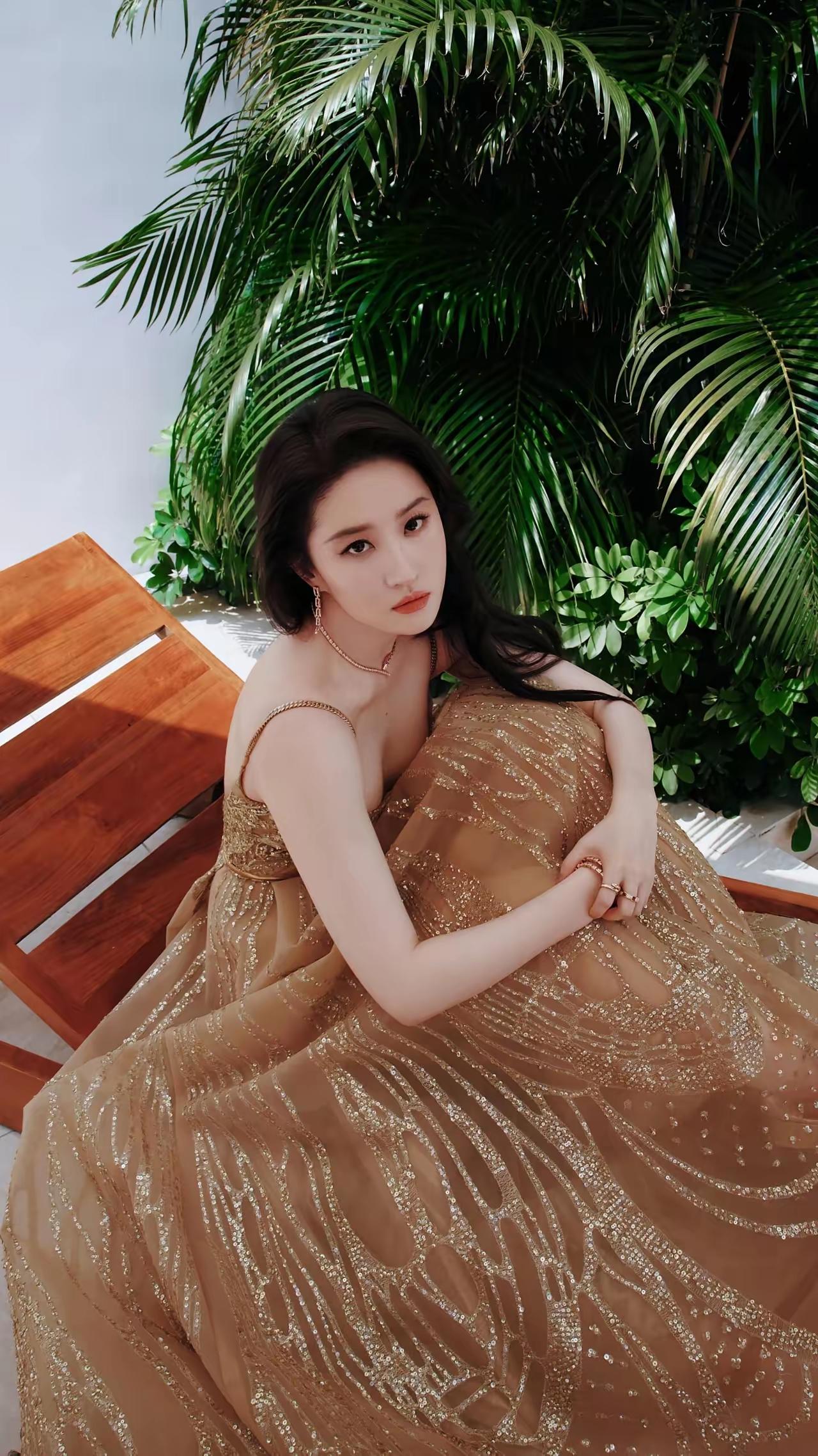 美女壁纸~刘亦菲, 仙女姐姐这身金色亮片裙太美了,仿佛自带柔光效果,让人心动不已