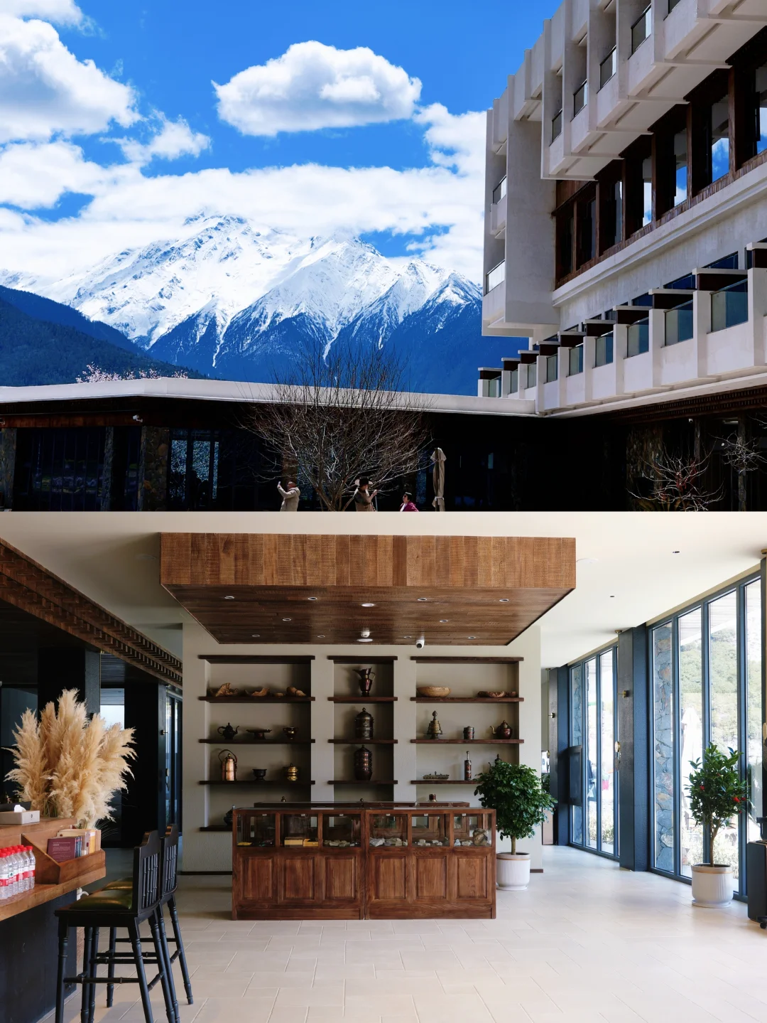 🍽餐厅:落地窗正对多雄拉雪山,吃顿饭宛若置身在画里