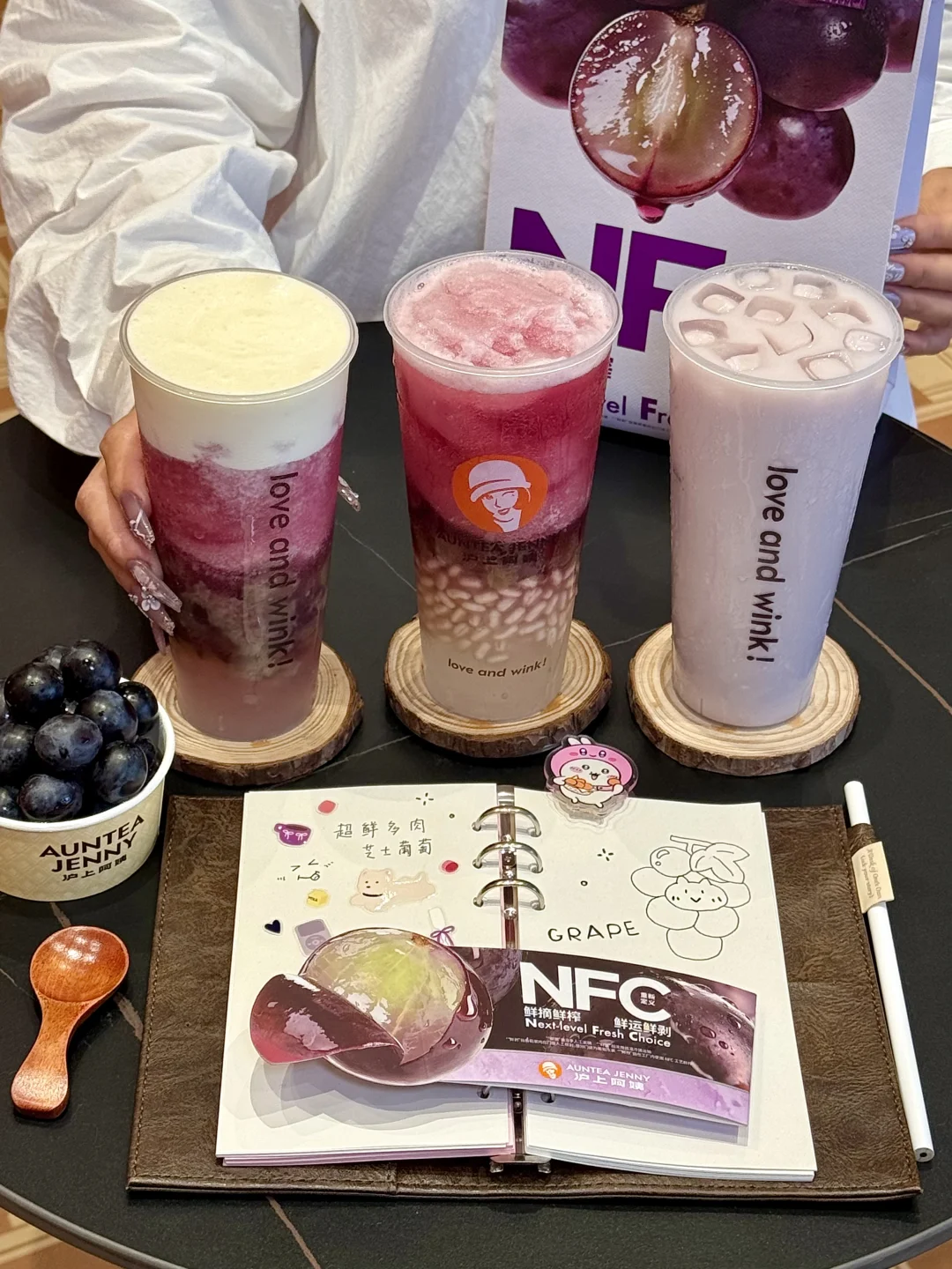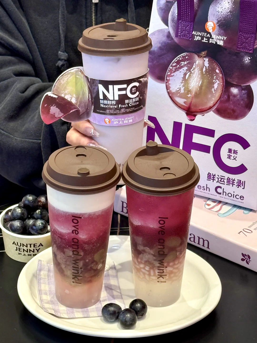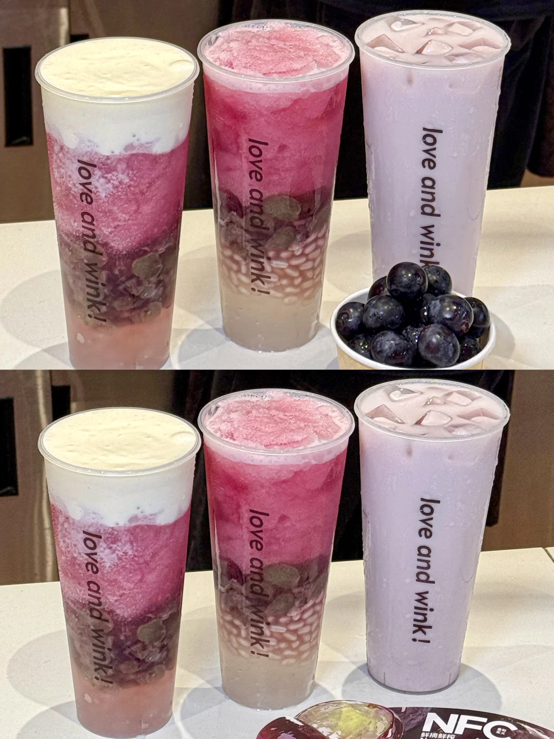 对嘴第一口,古早多肉葡萄的味道!一把回到十年前那种惊艳的感觉终于!又!出现了!!!加了NFC鲜榨葡萄汁,云南夏黑葡萄果味超级超级浓!!空口吃葡萄的感脚!好新鲜😚和咸香醇厚的芝士融合之后,奶fufu的!配上大多肉好喝s了