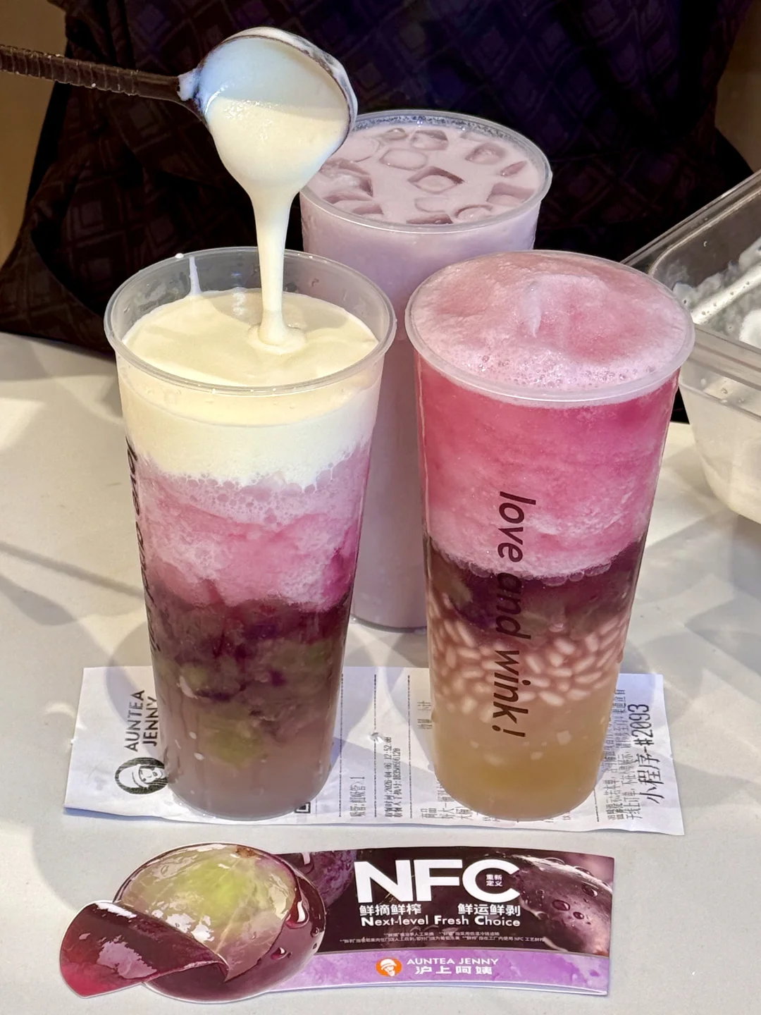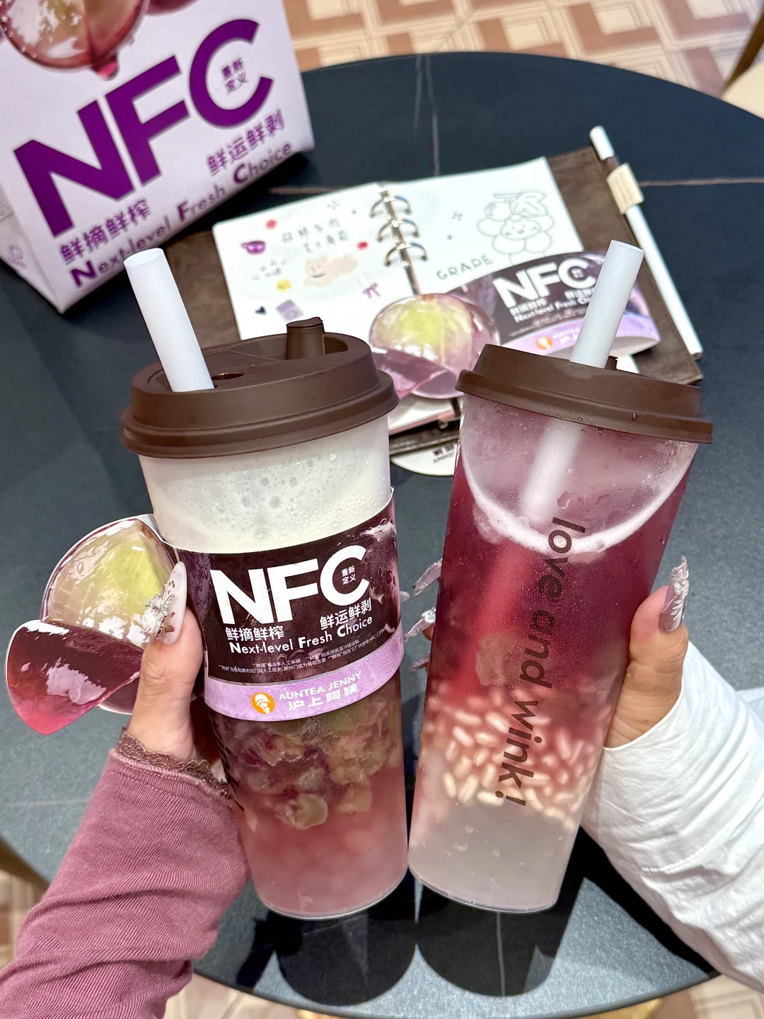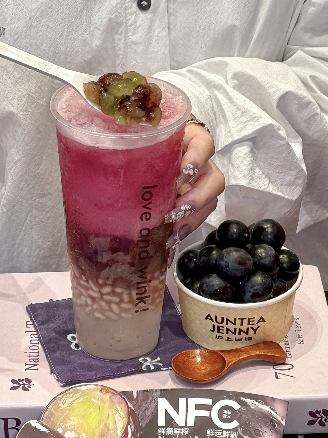 对嘴第一口,古早多肉葡萄的味道!一把回到十年前那种惊艳的感觉终于!又!出现了!!!加了NFC鲜榨葡萄汁,云南夏黑葡萄果味超级超级浓!!空口吃葡萄的感脚!好新鲜😚和咸香醇厚的芝士融合之后,奶fufu的!配上大多肉好喝s了