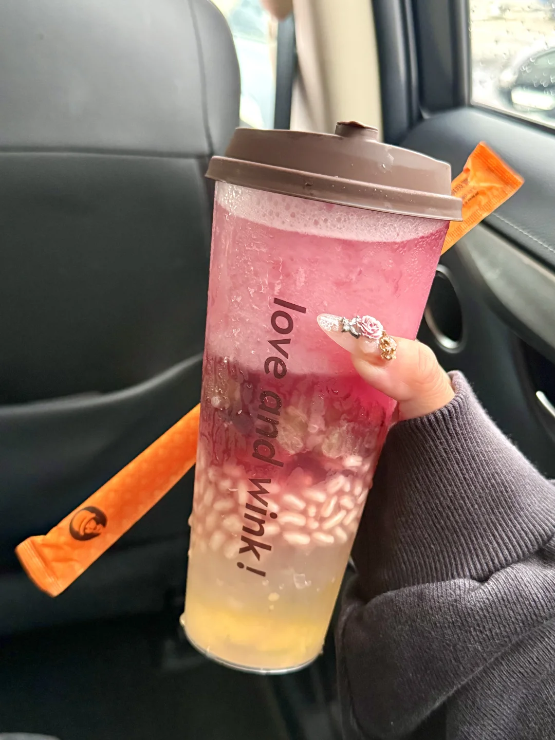 朋友点的超鲜多肉葡萄金砖也特别好喝!里面也有葡萄果肉,还有大多肉、燕麦爆珠和茉莉冻冻Duangduang的层次感吼丰富!很适合春天