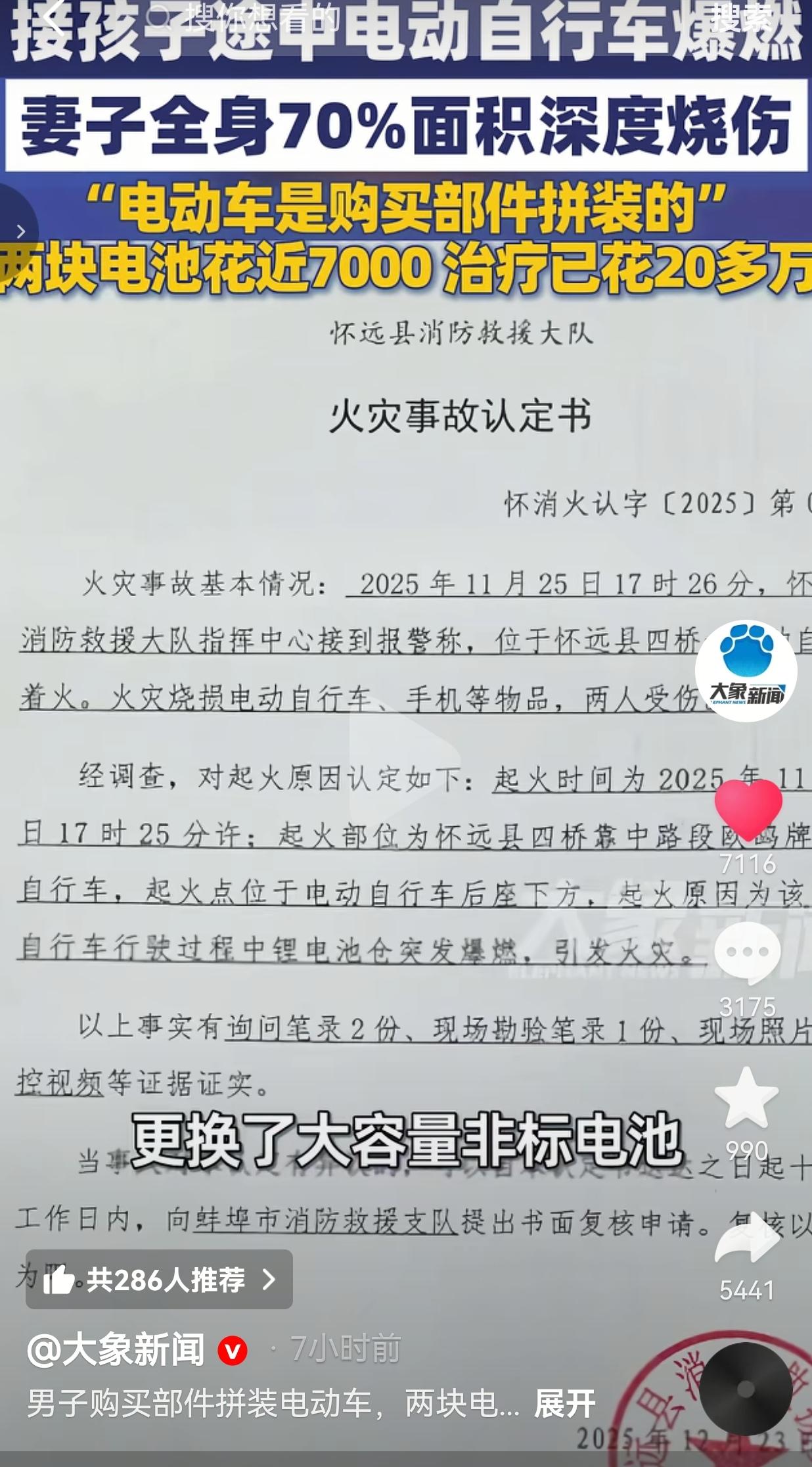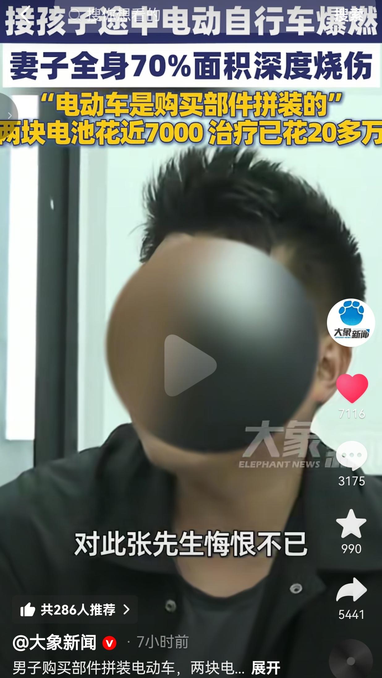 太痛心了,男子为多续航花1900元换非标电池,接娃途中突然爆燃!妻子70%深度烧伤,20万治疗费拖垮整个家!