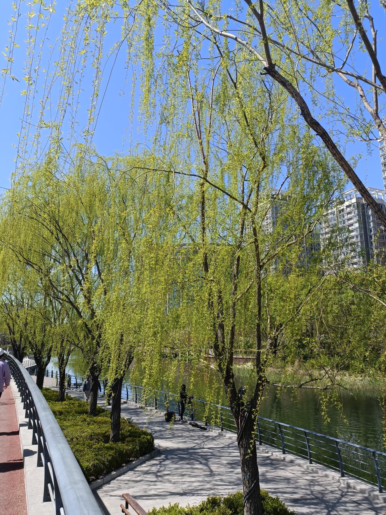 晒图笔记大赛绿意盎然亮马河畔,微风吹拂柳树成荫