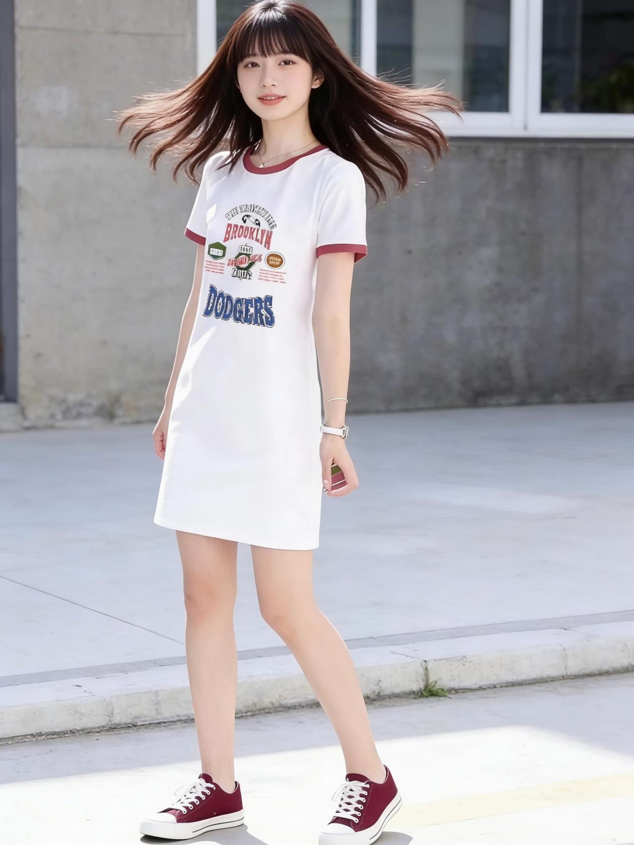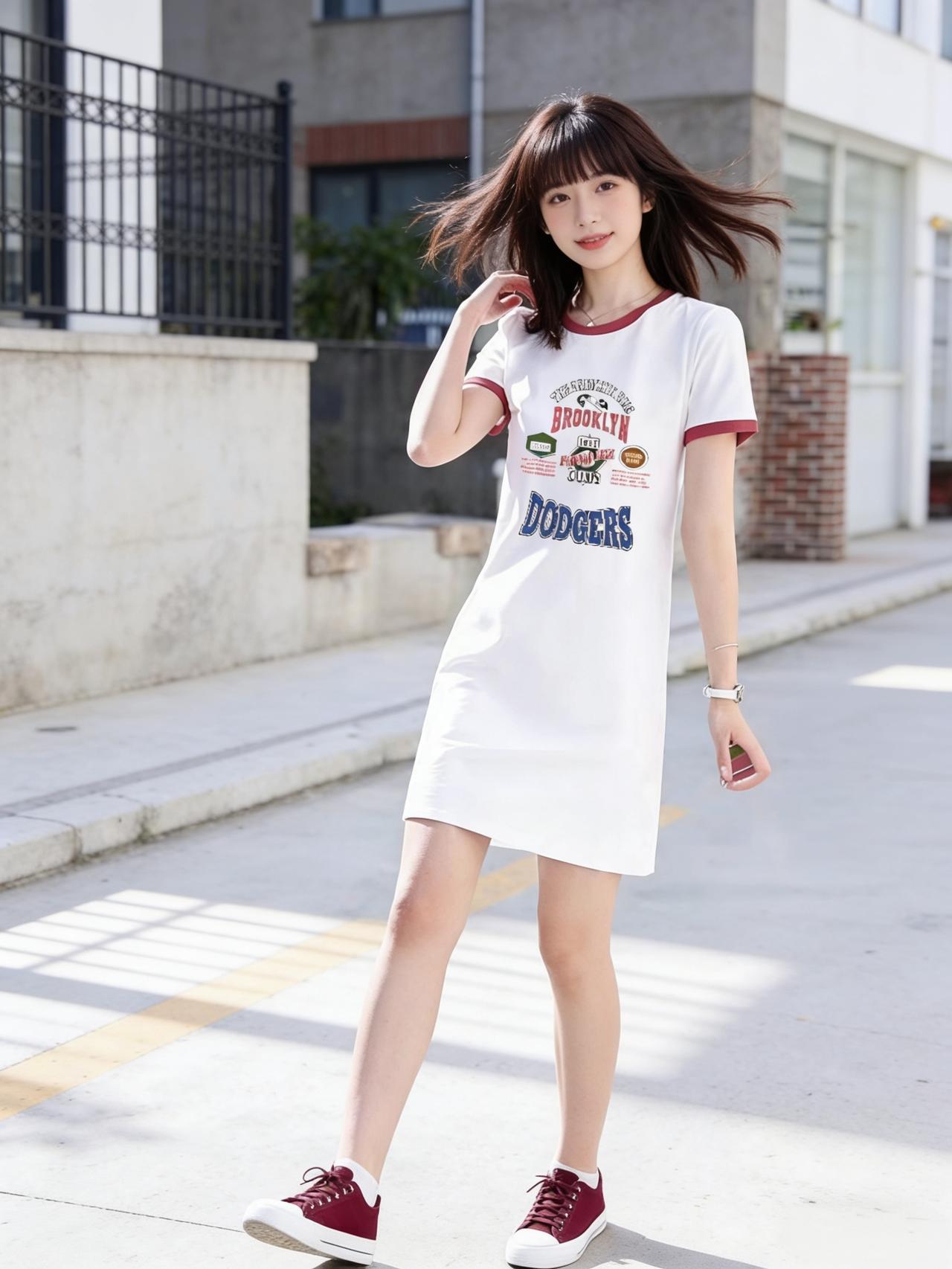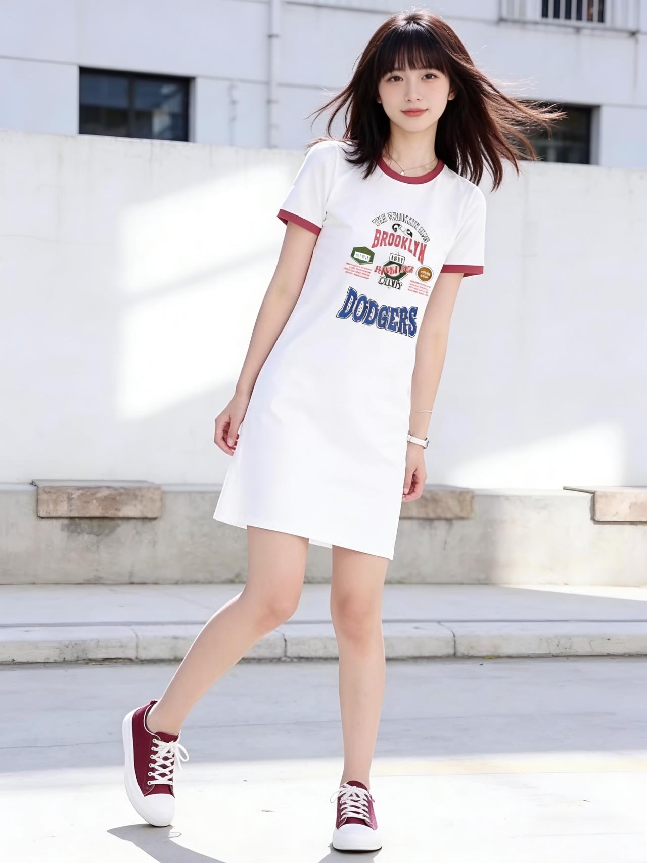 青春洋溢的街头穿搭,白色T恤裙搭配红色运动鞋,活力满满!🌞👟👗女生27岁,