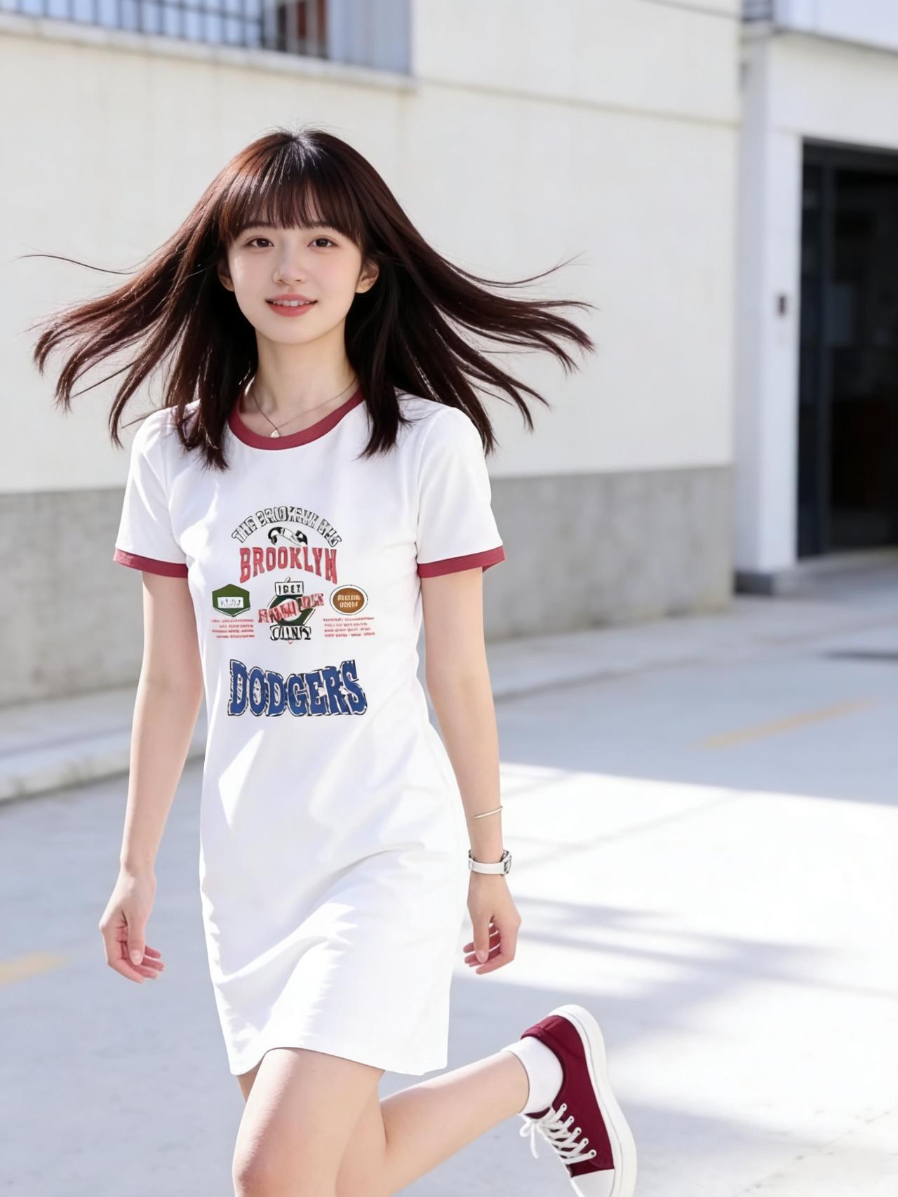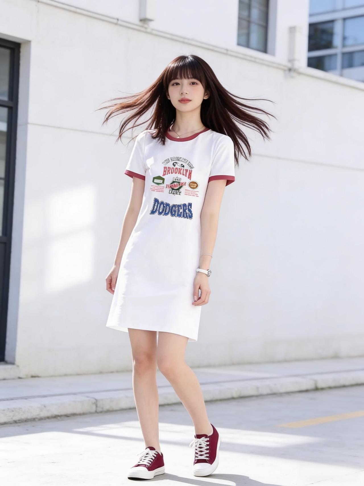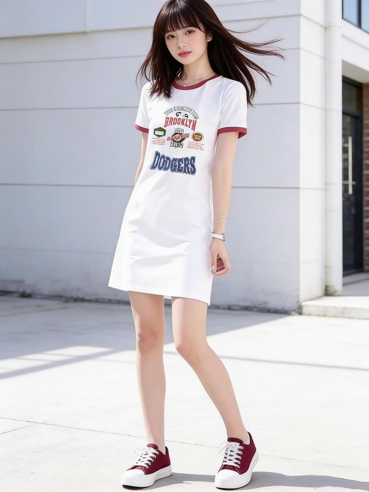 青春洋溢的街头穿搭,白色T恤裙搭配红色运动鞋,活力满满!🌞👟👗女生27岁,