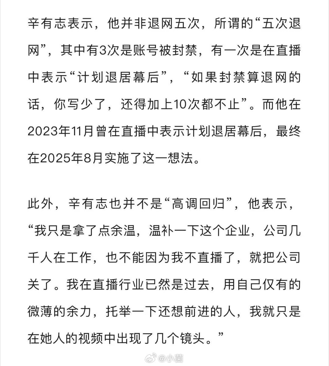 辛巴这波回应挺实在,所谓的“五次退网”不过是外界乱扣帽子。他这些年助农、救灾,真金白银往里砸。一个愿意扛事儿的实干家,值得咱们挺他!