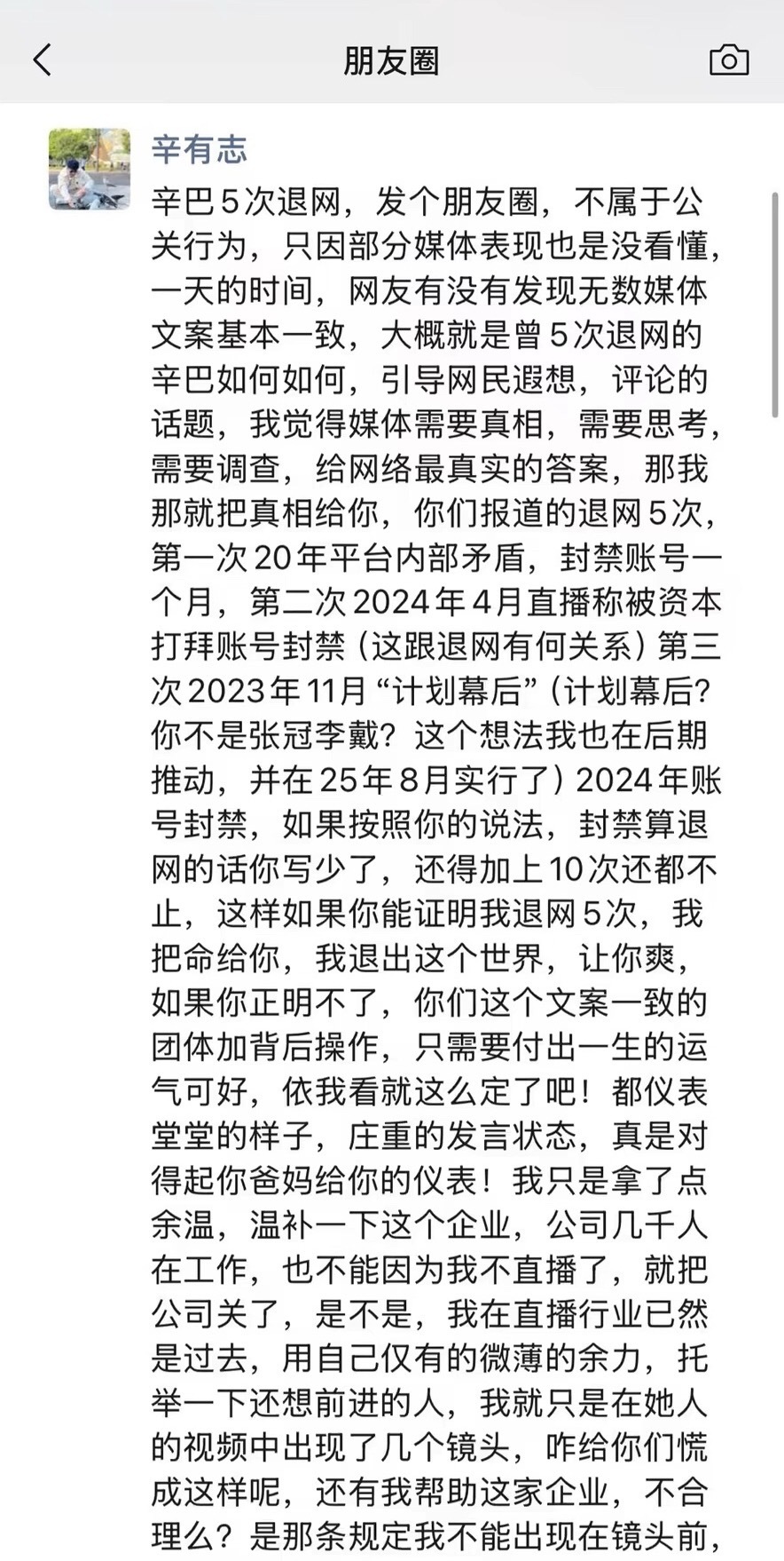 辛巴朋友圈吐槽被五次退网辛巴怒怼媒体辛巴发文怒怼媒体:如果封禁账号算退网的话你写