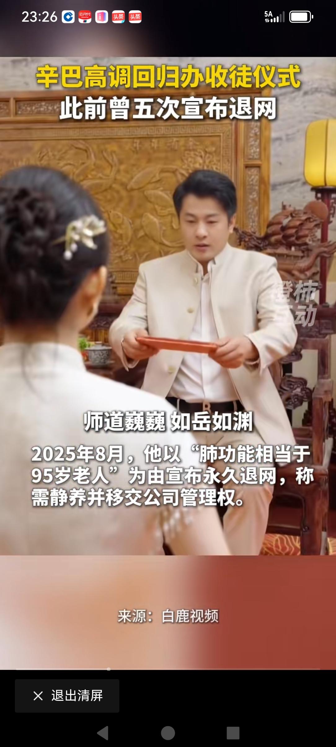 大清明的选这种日子,还选用这种方式收弟,还跪拜呢!拿一本书在宣读?看不懂,辛巴在去年还被罚款,被封禁的,怎么又复出了?这个平台也是,不刷脸的吗?
