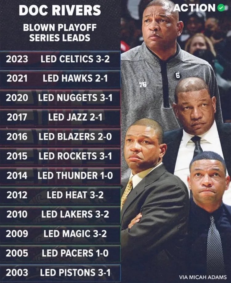 ▲猪头是唯一一位多次大比分3-1和3-2领先被翻盘的主教练