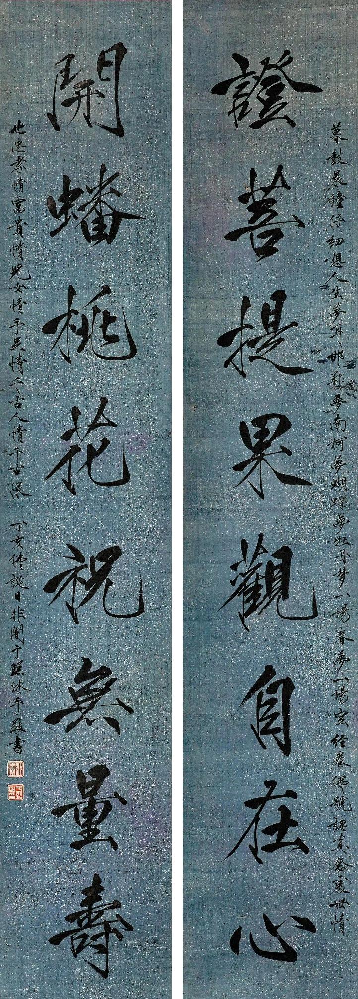 郑孝胥 行书 八言联 《鸾凤清音通乎律吕,鼎彝古色灿若云霞》 吴湖帆 行书 八言