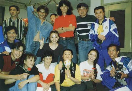 群星荟萃:我一眼就认出了下巴与手指抵着足球的赵本山,端着相机的摄影师李振增,拿着花朵的那英与蔡明;当然还有开心比耶的宋丹丹、发型拉风的毛宁,阳光俊逸的井岗山,手搭毛宁肩头的是周立波吧?最后一排那位穿红T恤、长发垂肩的高挑男星是谁?