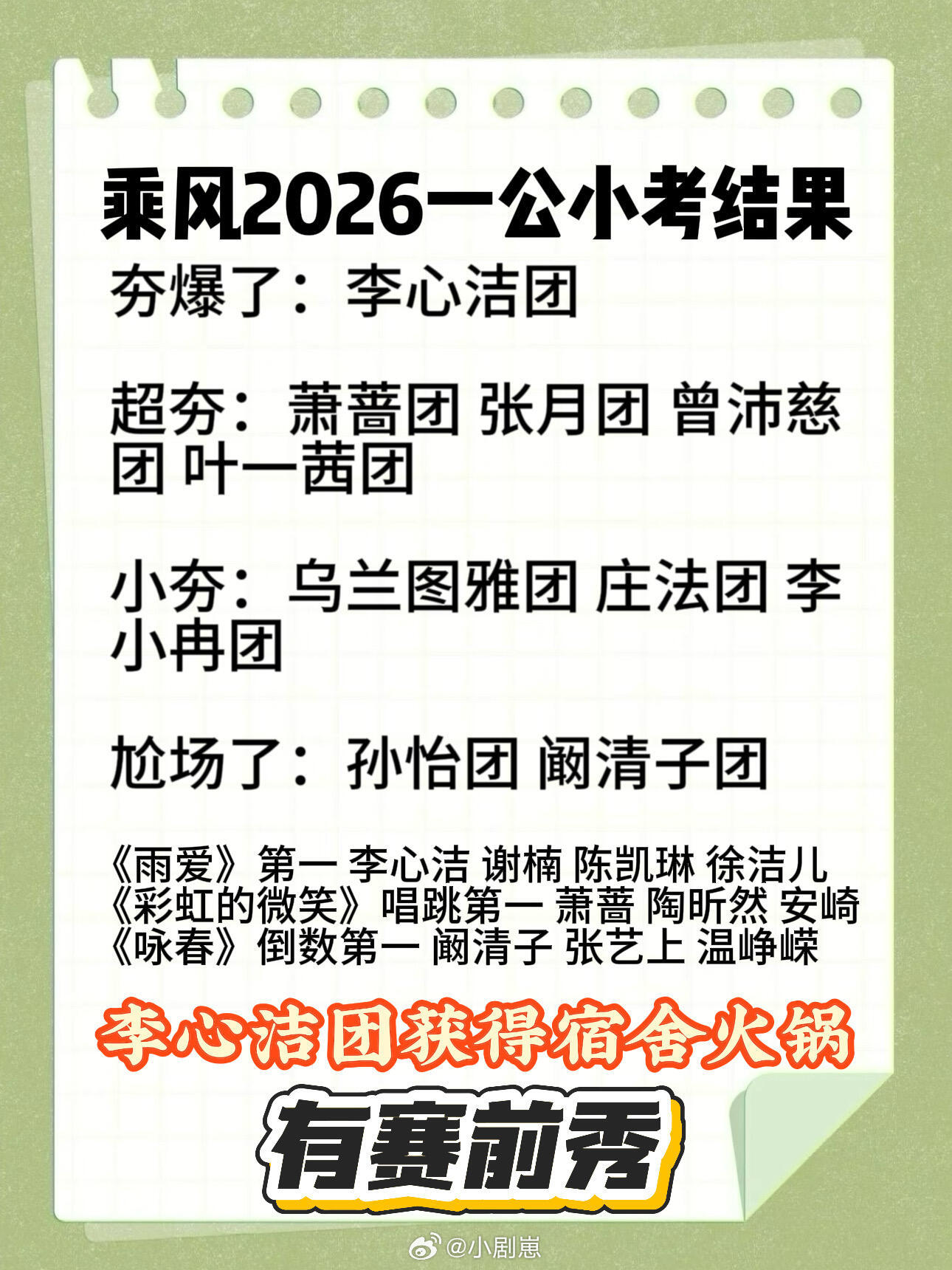 乘风2026|浪姐一公小考结果(有合照)