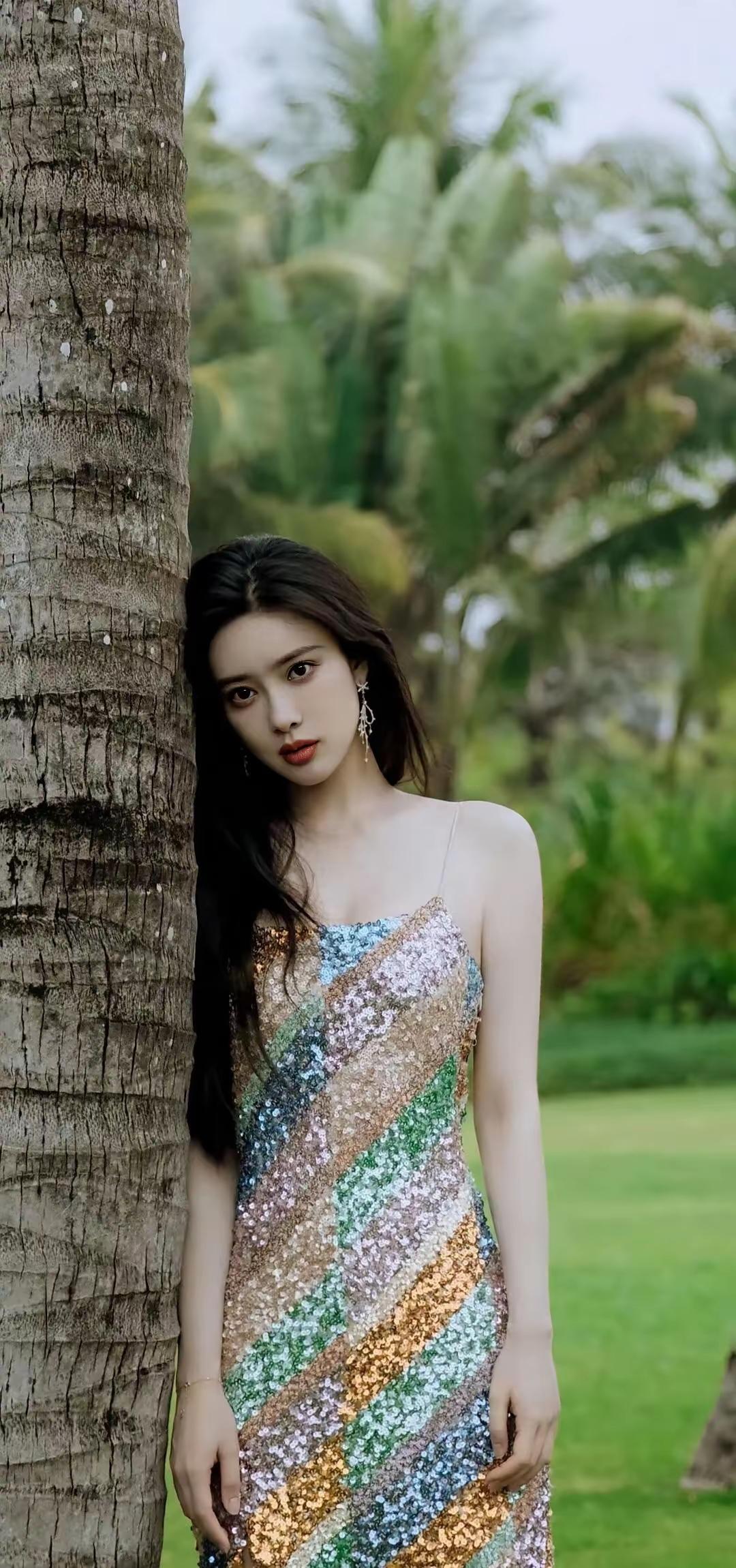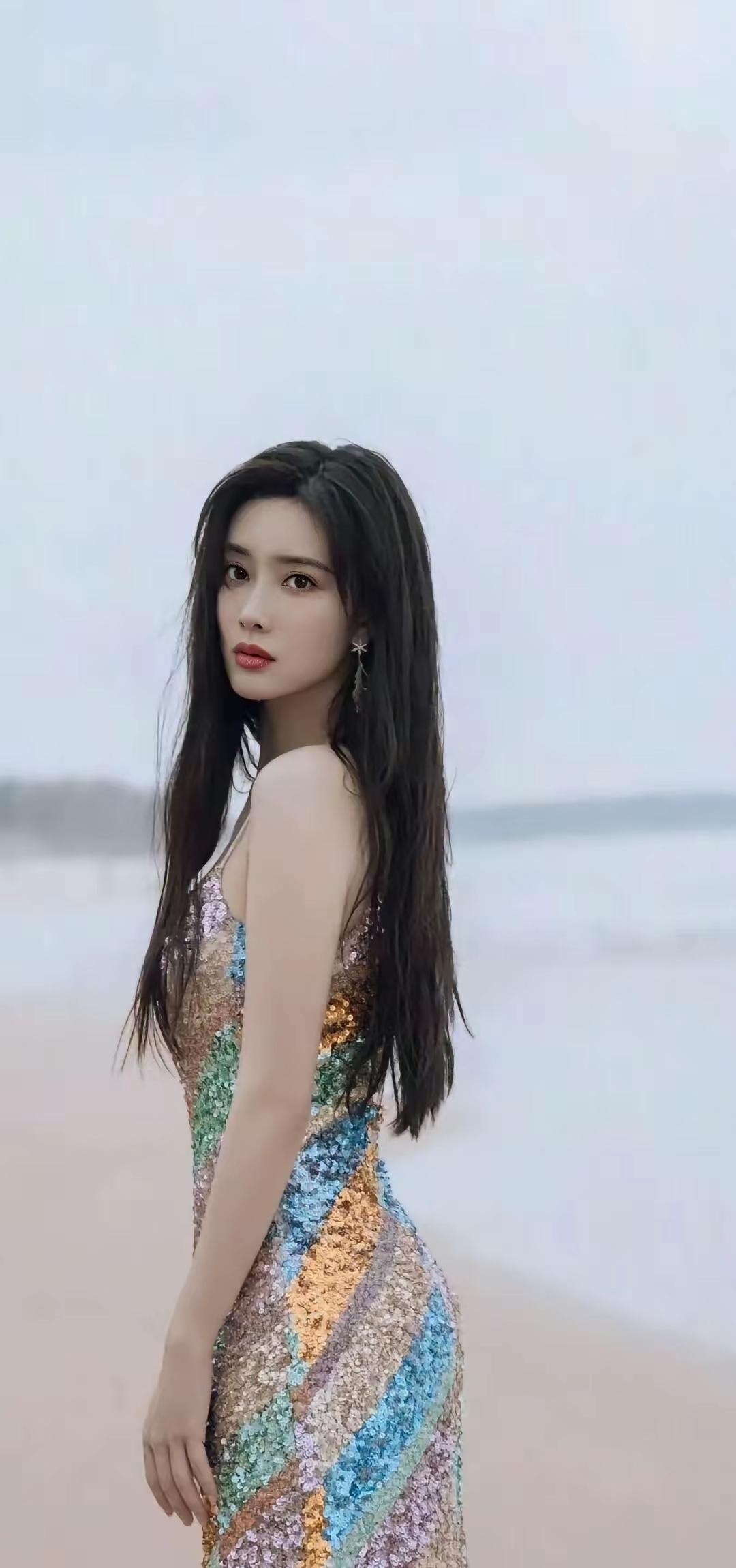 孟子义,一袭彩片吊带裙在光影中流转生辉。 每一片亮片都缀着海边的浪漫,以潮汐为幕