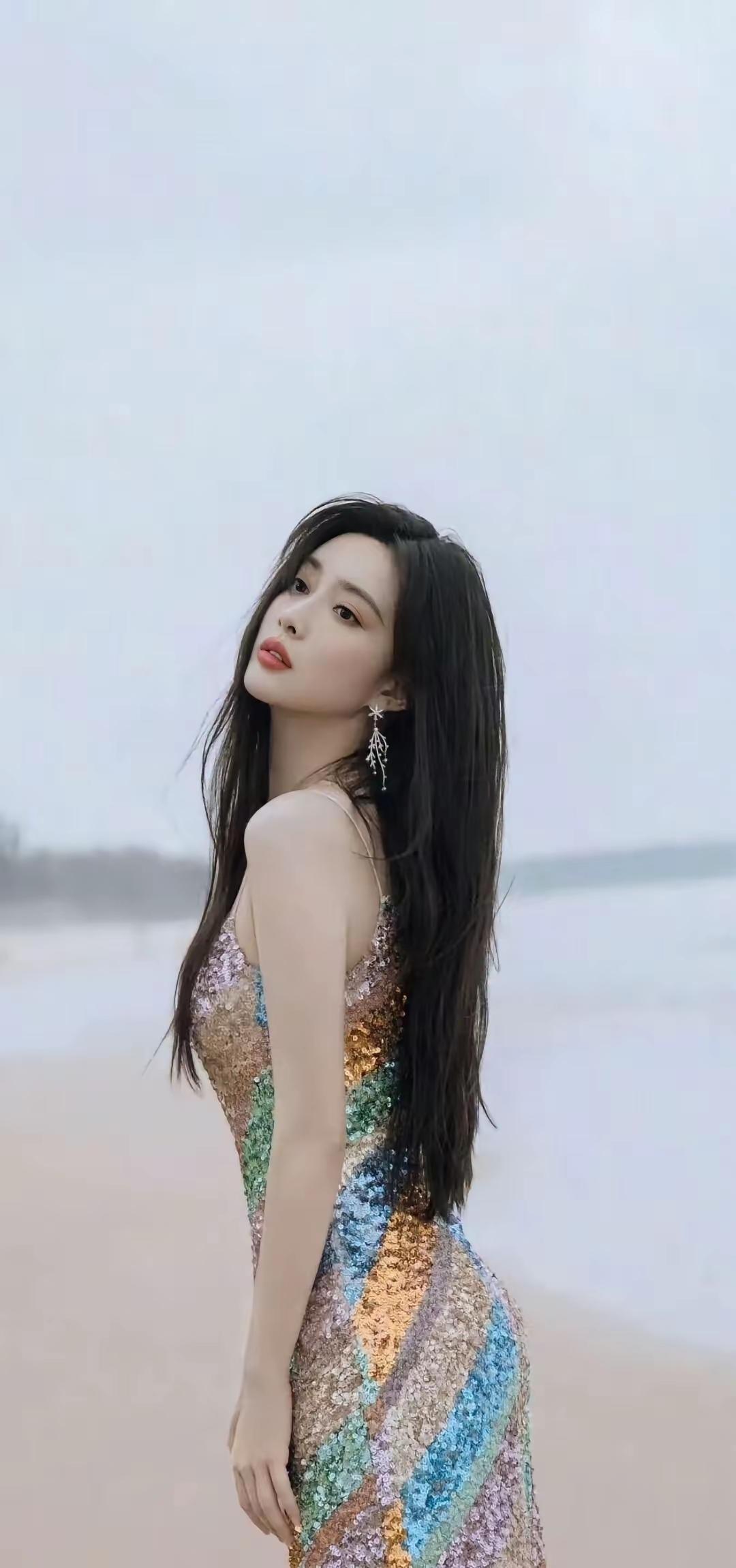孟子义,一袭彩片吊带裙在光影中流转生辉。 每一片亮片都缀着海边的浪漫,以潮汐为幕,以晚风为衬,将夏日的耀眼与温柔,尽数定格在镜头里