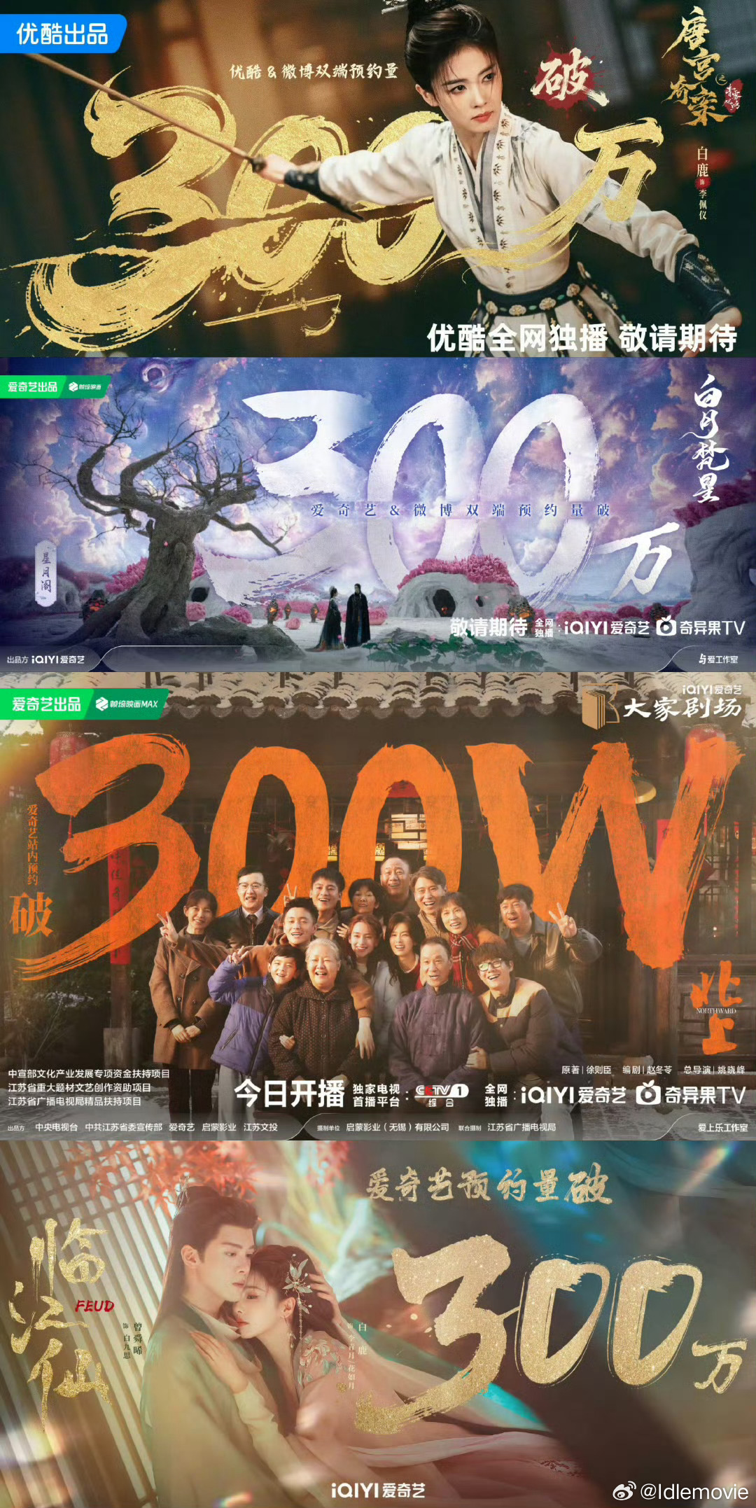 考古白鹿,越考越有,我从《北上》开始追白鹿,但当时没发现白鹿TOP1的实力,《北上》《白月梵星》《临江仙》《唐宫奇案》预约均破300万,《莫离》目前288.2万,300万近在眼前,扛剧小花,名不虚传,不愧是实力与国民度双高90花顶流。