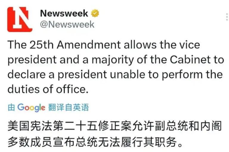说到底,25条修正案从来都不是什么“救命稻草”,看似是约束总统的“安全阀”,实则早就被两党当成了博弈的工具。