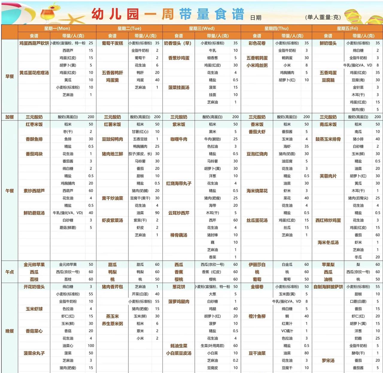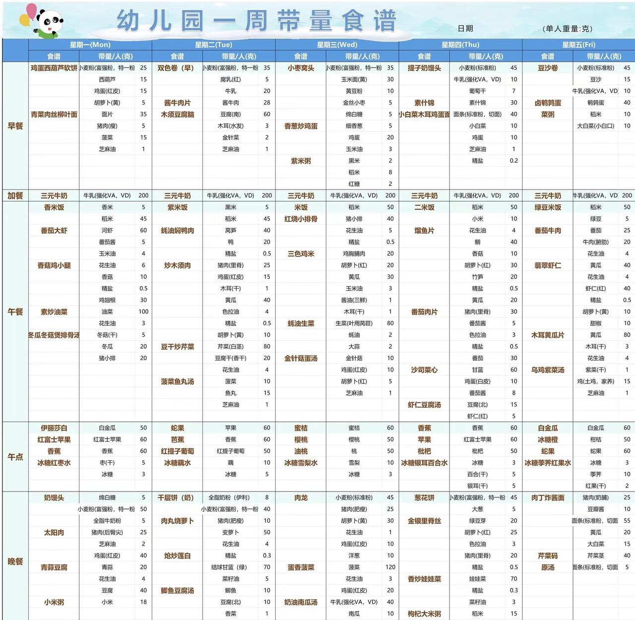 幼儿园2026年带量食谱表。共48周幼儿园带量食谱 幼儿园食谱 幼儿园带量食谱表 幼儿园食谱表