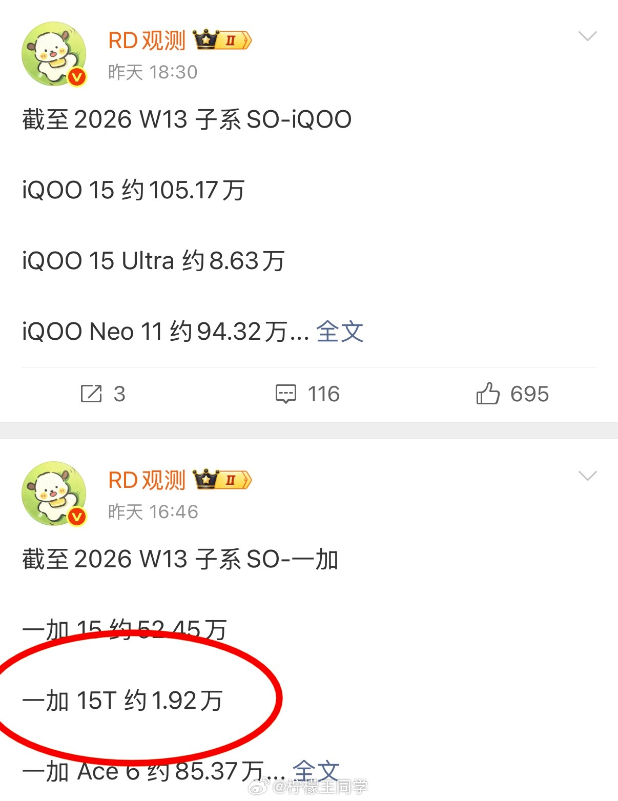 我之前说看不懂一加15t这个机型,非要有人嘴硬,现在销量出来了,就1.92万台…老实了?