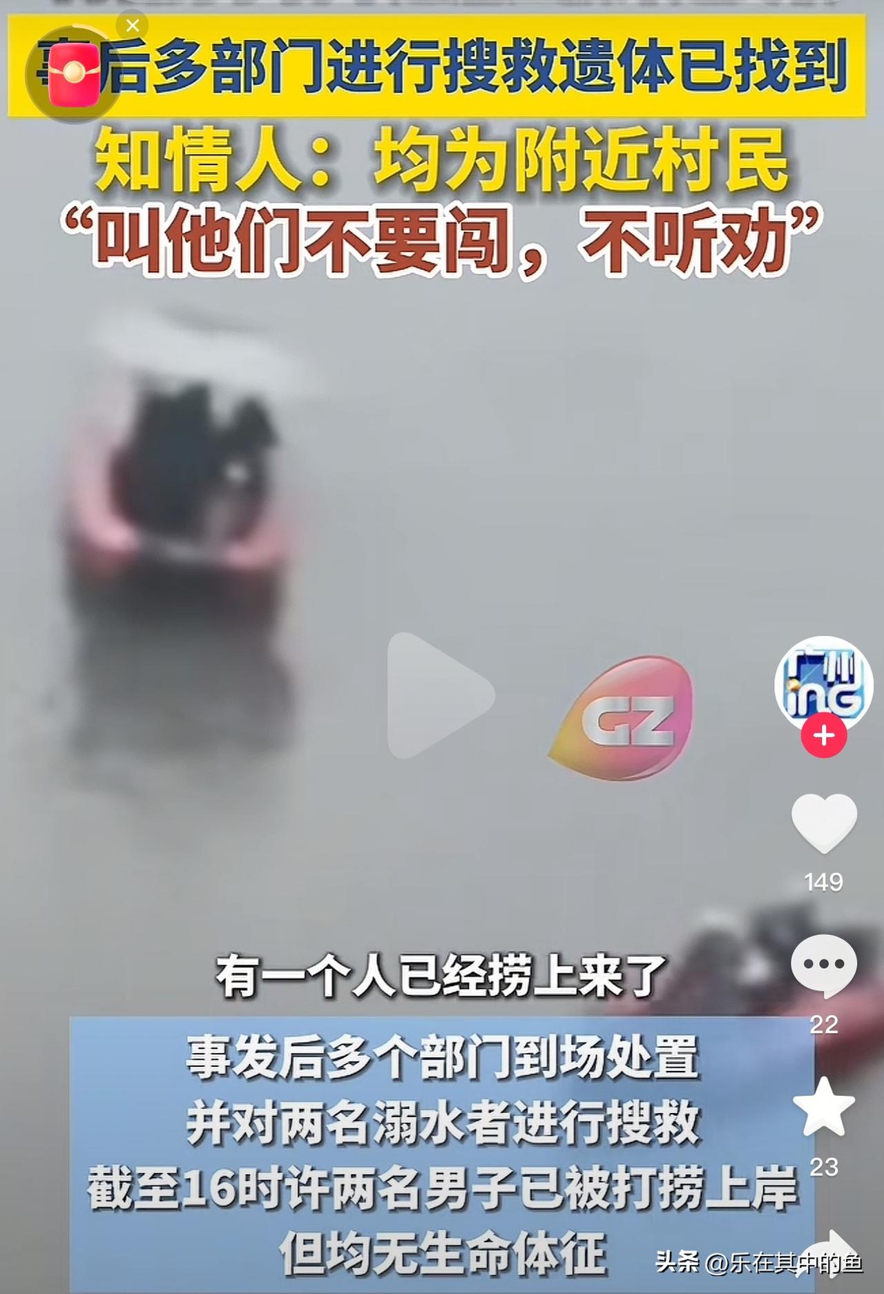 从早上出事到下午,整整几个小时的搜救,下午两点多,第一名男子的遗体被找到,四点多,第二具遗体也打捞上岸,两个人都已经没有了任何生命体征。