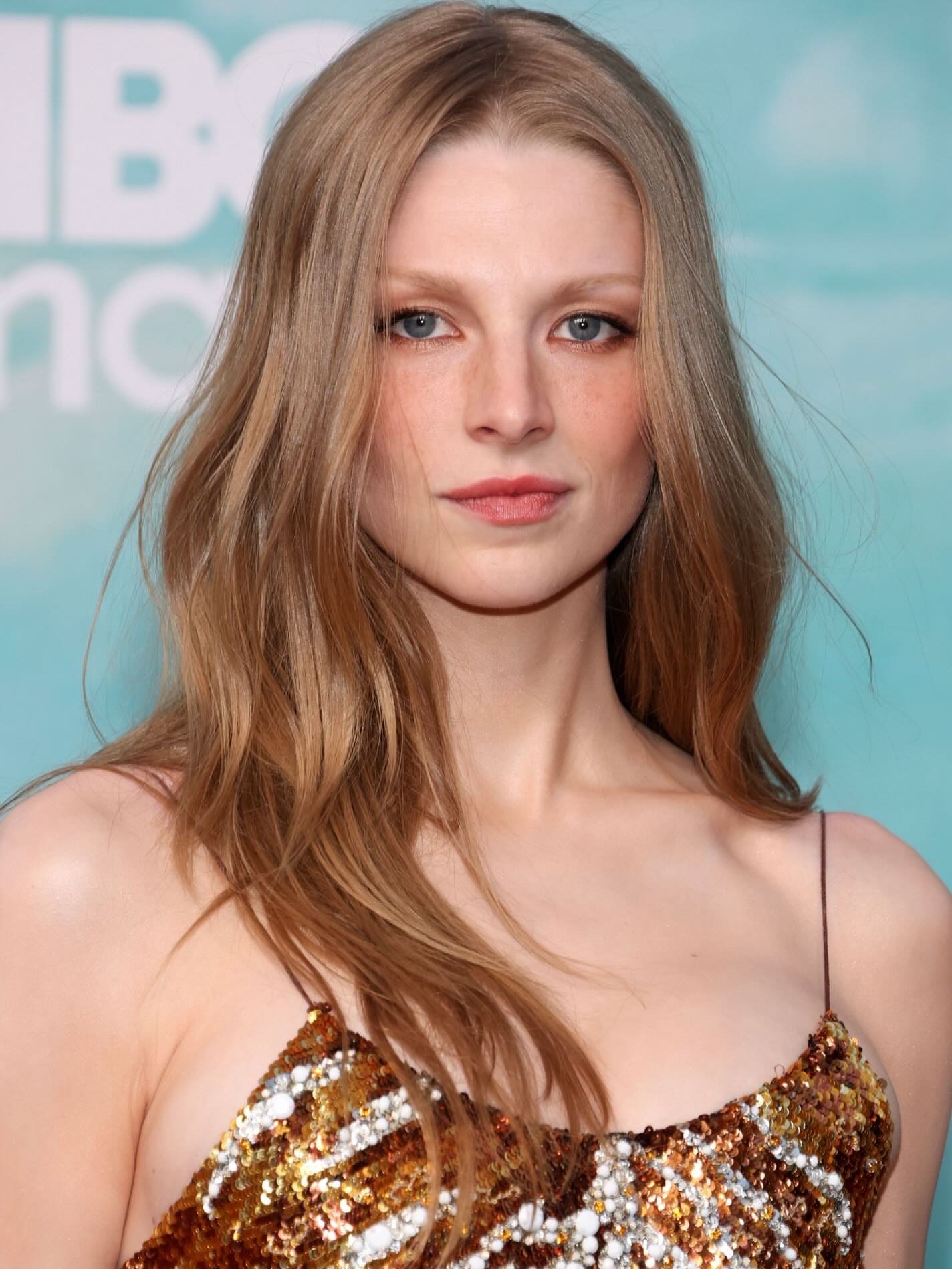 Hunter Schafer 出席HBO剧《亢奋Euphoria》第三季首映礼,穿了一条Roberto Cavalli 吊带裙,金色与古铜色的亮片刺绣,呈现出类似叶脉或骨骼的纹理,极具艺术感。