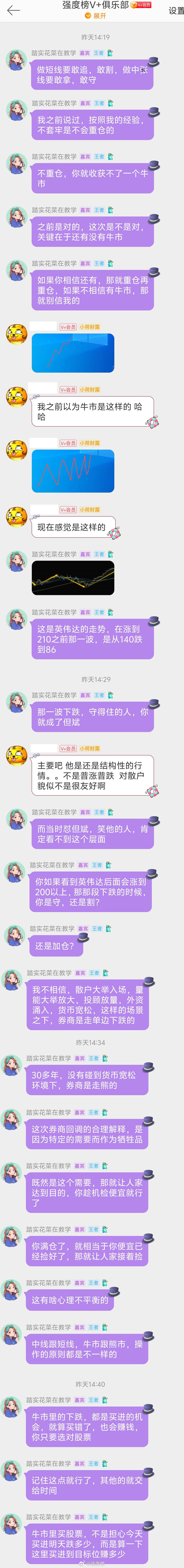 昨天榜主在V+群里讲,这个时候心态很重要。如果你把满仓当作套牢来看,那肯定很难受,弄不好就会割。但如果你把满仓当作便宜货提前捡好了,现在剩下的便宜货让人家去捡,那你自然就释然了。