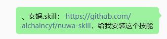 女娲.skill的安装地址是: -skill,将其发给龙虾就能安装好。