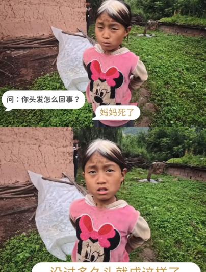 一个10岁左右的女孩,妈妈喝农药死了,伤心过度没过多久头顶头发全白了,采访她的时候眉头一直皱成一团,面容苍老看着比家里的奶奶还要显苍老。这不是天生的少白头,而是妈妈离世后,她日夜伤心,一点点熬白的。
